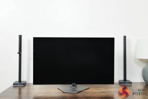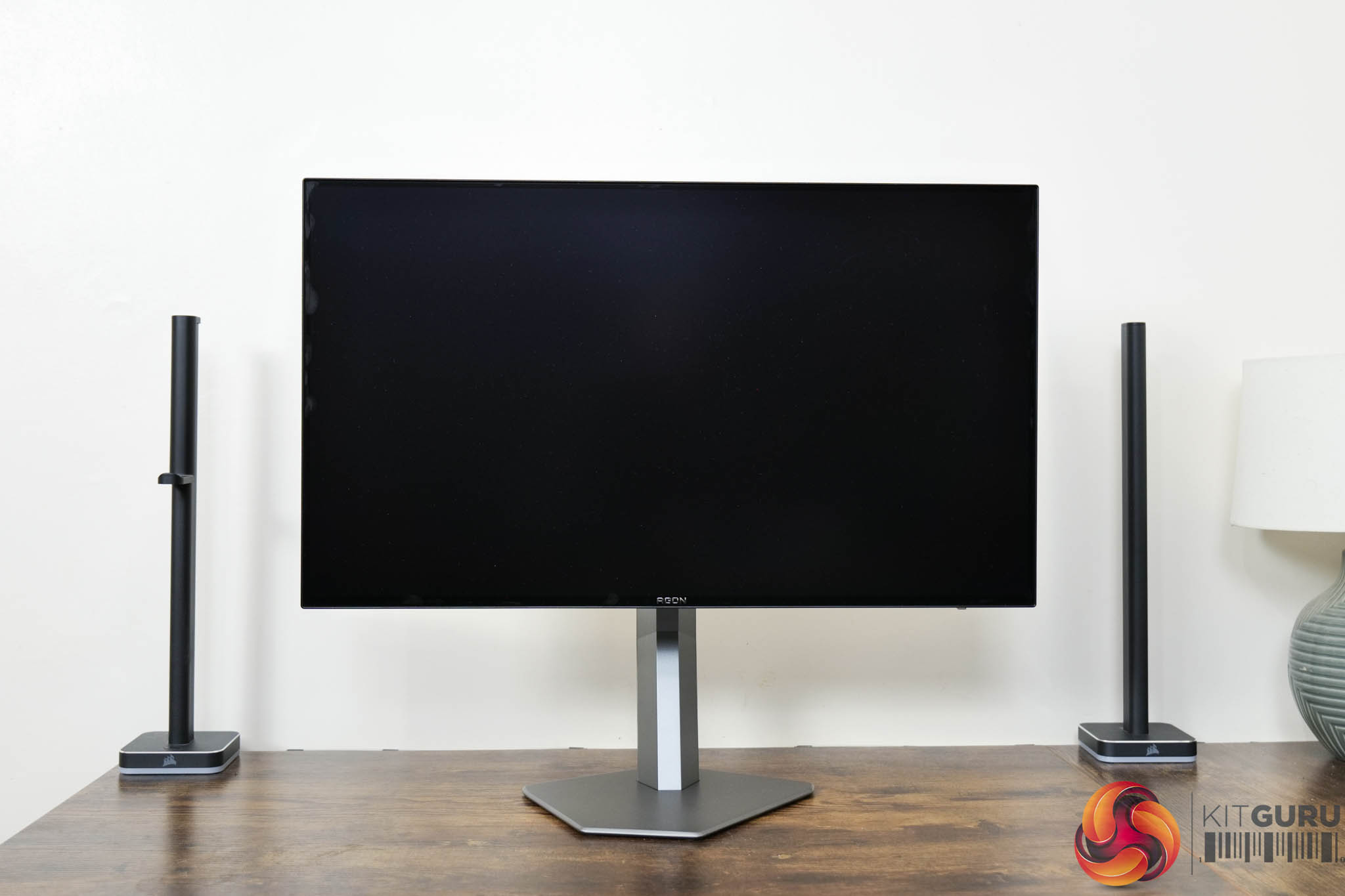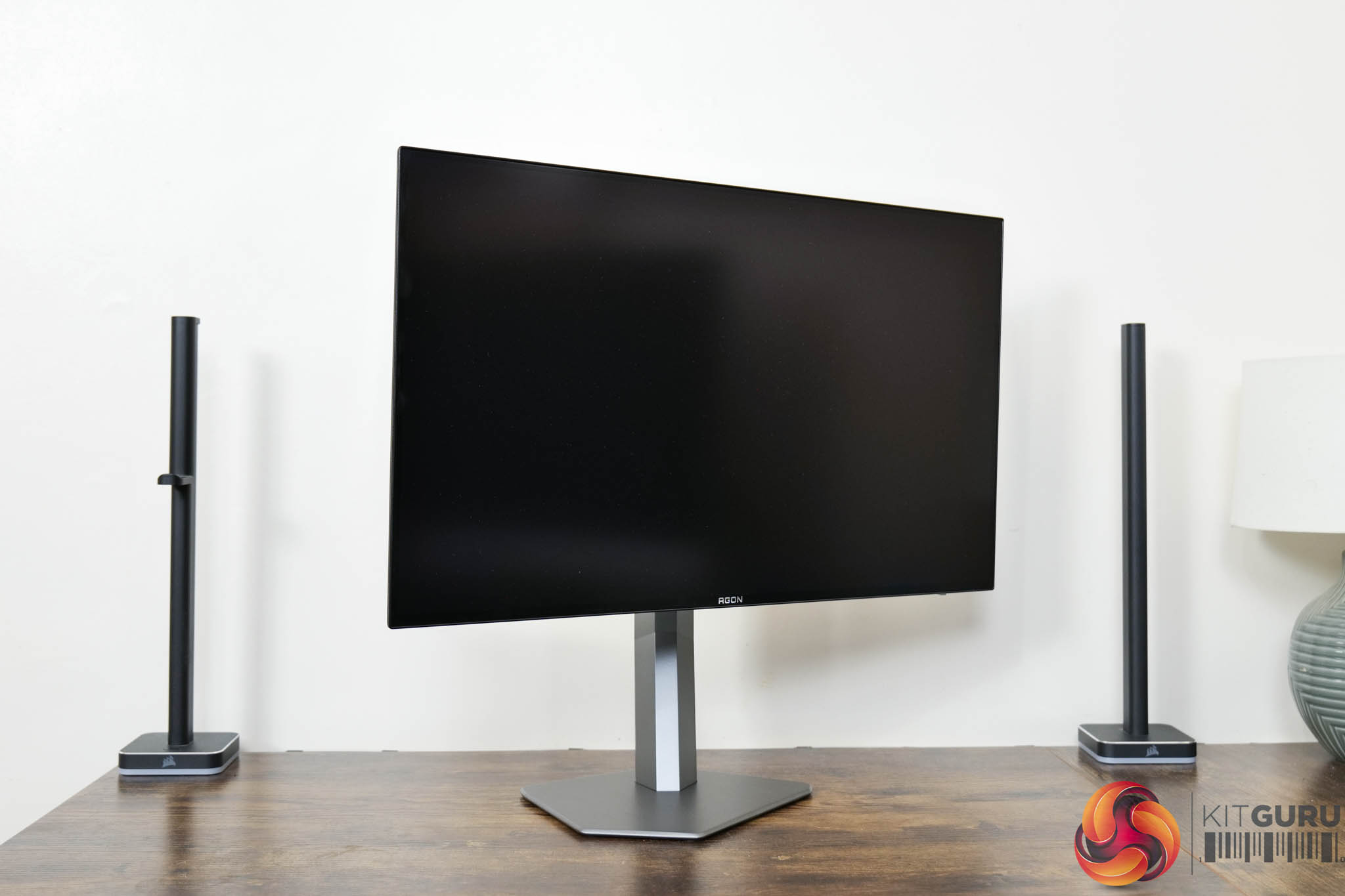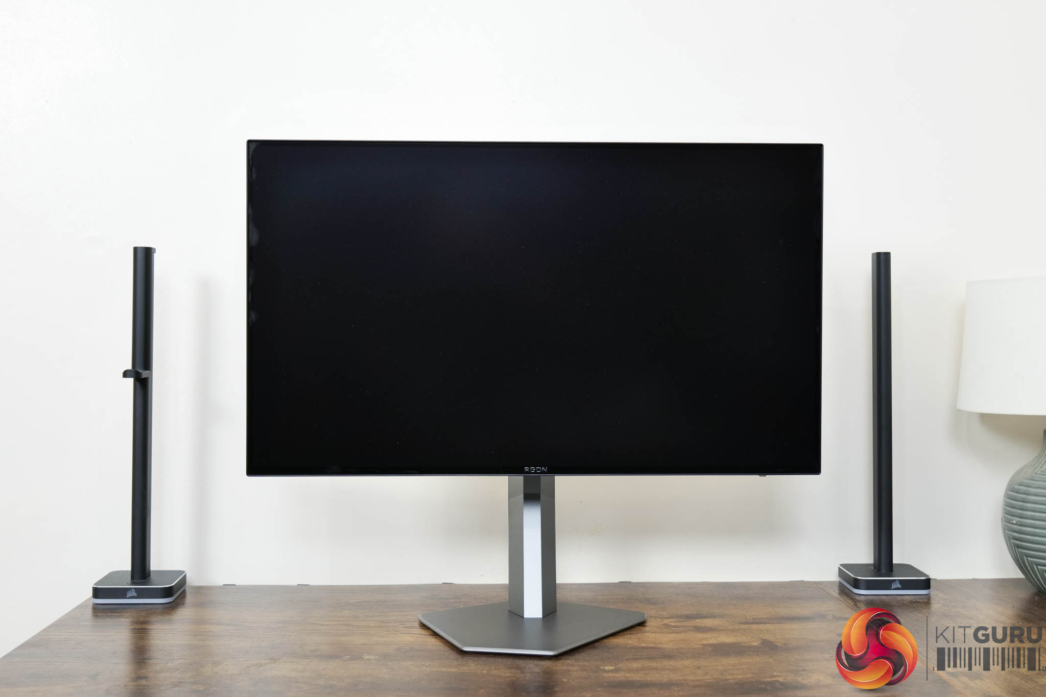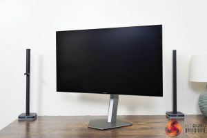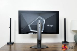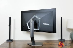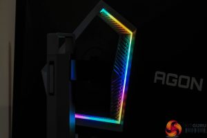 Kicking off with a look at the design of the AOC AG276QZD, I have to say I like what AOC has done here. The main panel area is very clean with a 4-sided bezel-free approach, so there's not even an obvious chin, helping to make things look quite sleek. The rear of the display is made from black plastic, and the stand attaches in the middle of an asymmetrical area which is flanked by RGB LEDs – as you can see below.