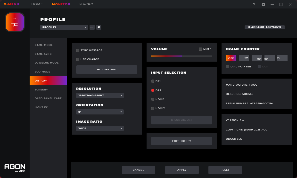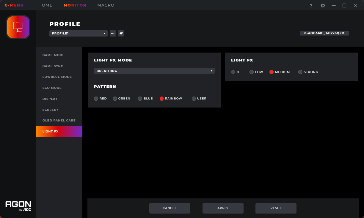 AOC does also offer its G-Menu software, giving users direct control over monitor settings from their desktop. This works well, apart from being a touch slow at times, and is generally fully featured. I imagine most people would use it to update the firmware, which is a good ability to have on any OLED screen.