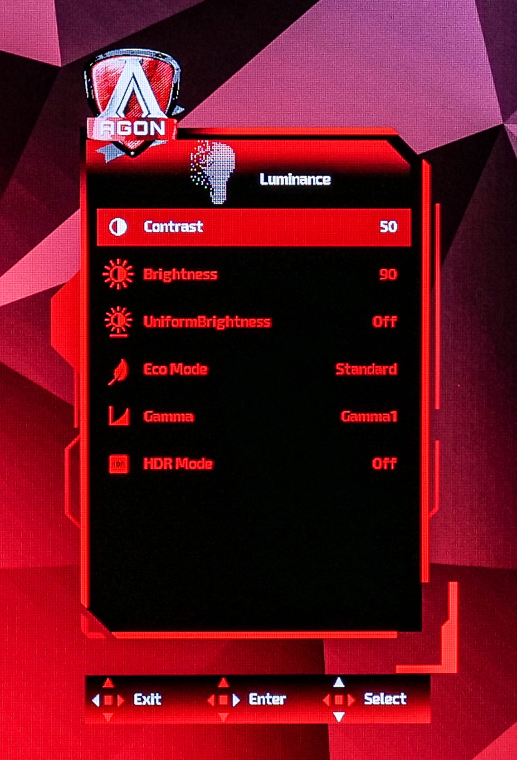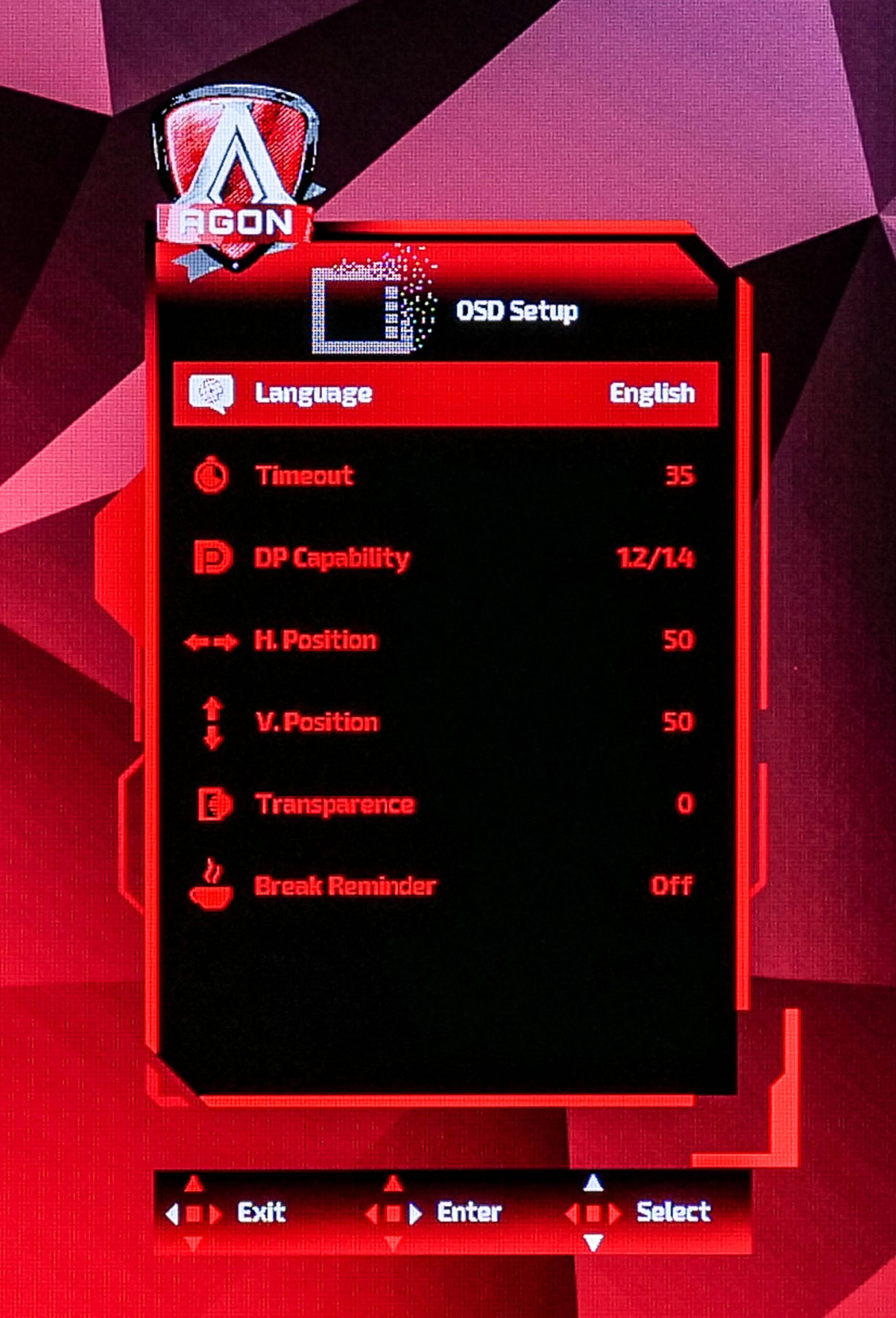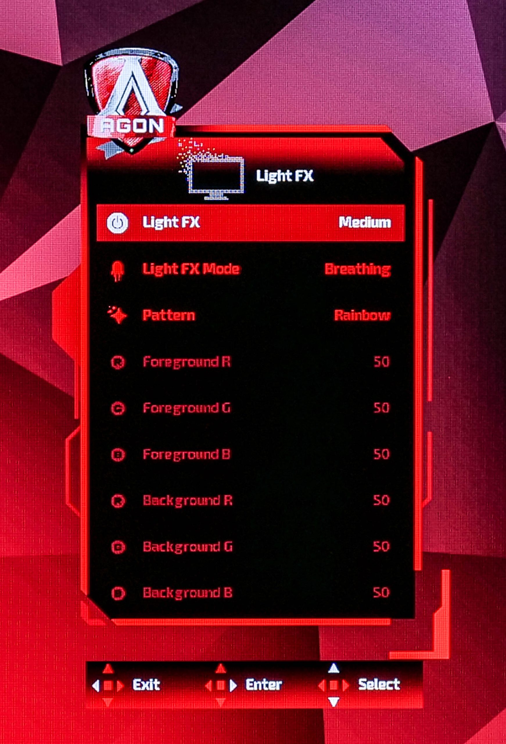 The OSD will be familiar if you've seen any of our other AOC Agon reviews, with everything is split into eight main tabs – Game Setting, Luminance, PIP Setting, Color Setup, Audio, Light FX, Extra, and OSD Setup: