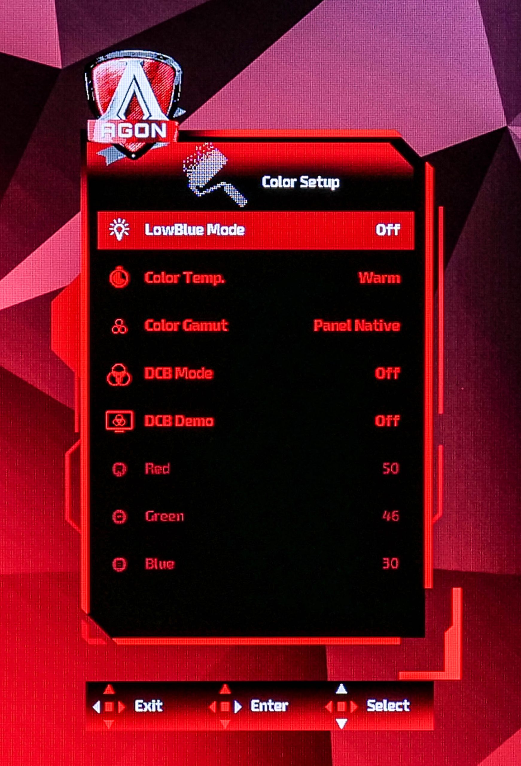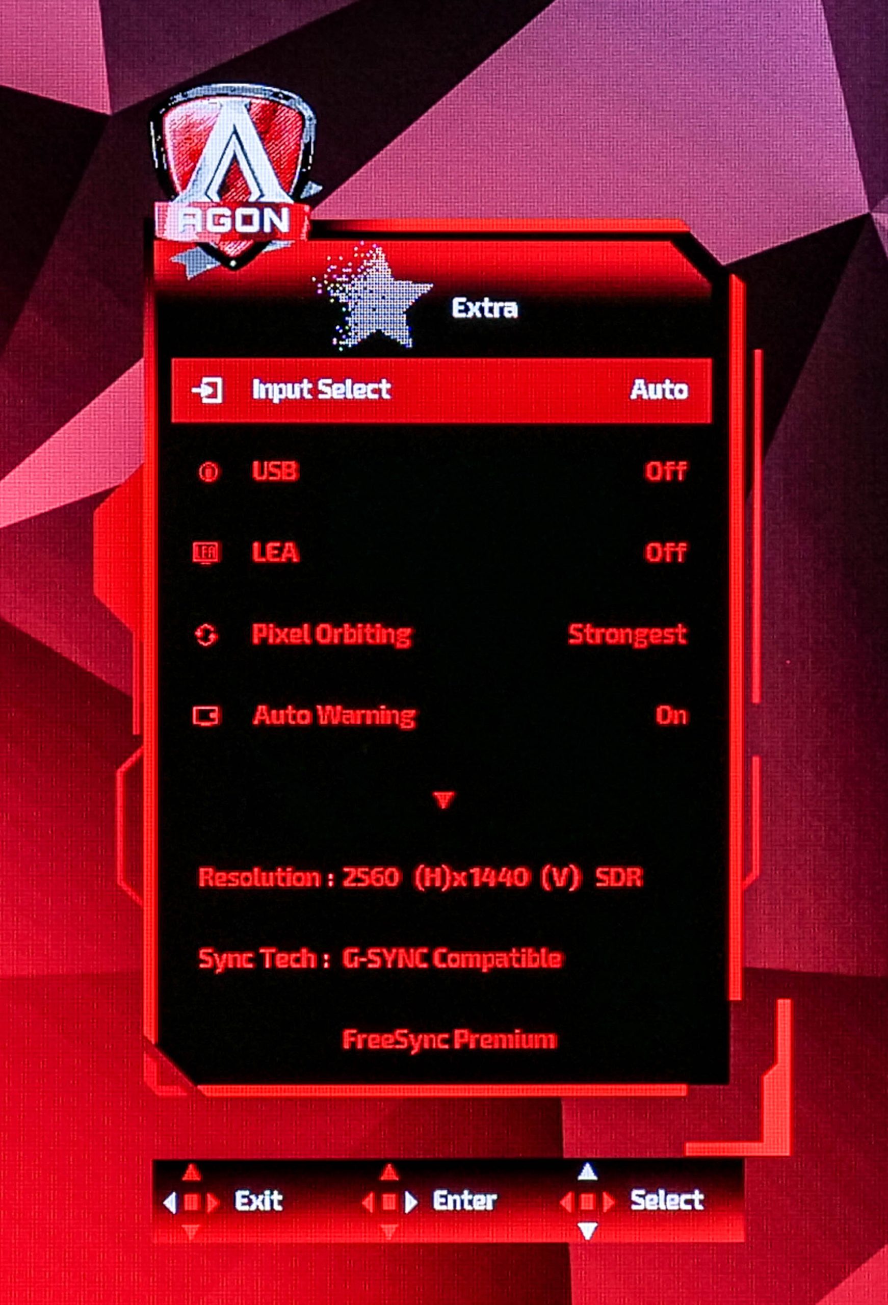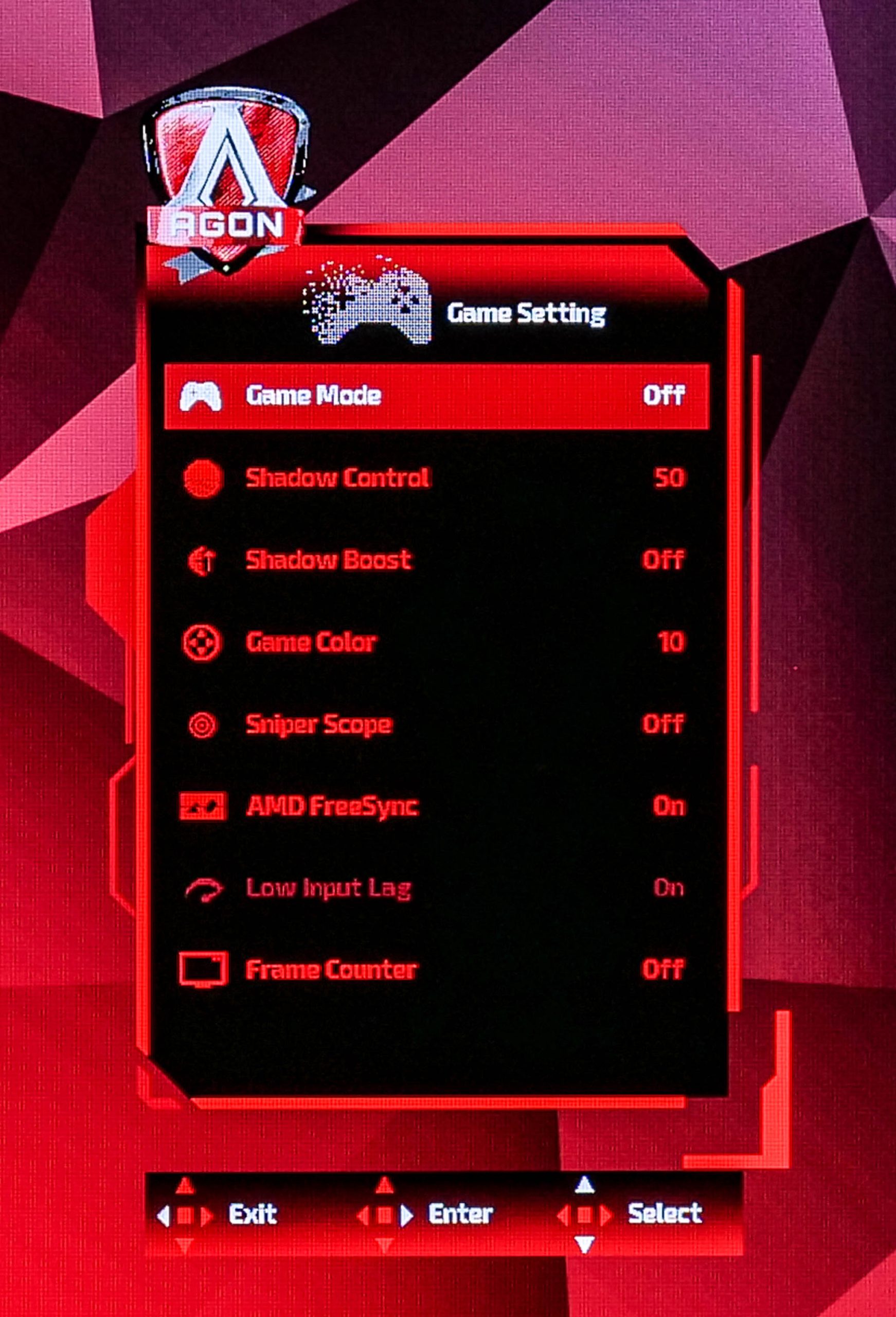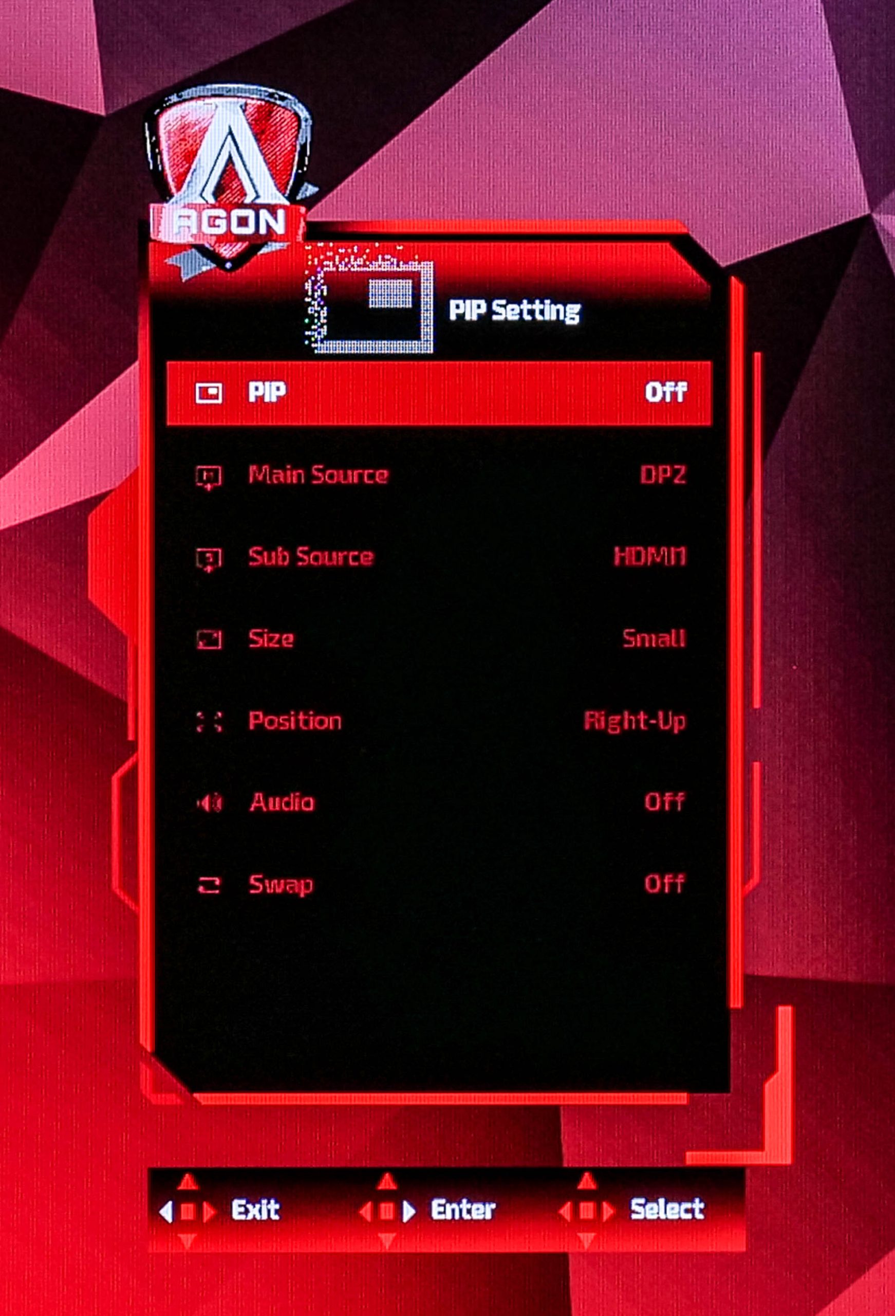 The OSD will be familiar if you've seen any of our other AOC Agon reviews, with everything is split into eight main tabs – Game Setting, Luminance, PIP Setting, Color Setup, Audio, Light FX, Extra, and OSD Setup: