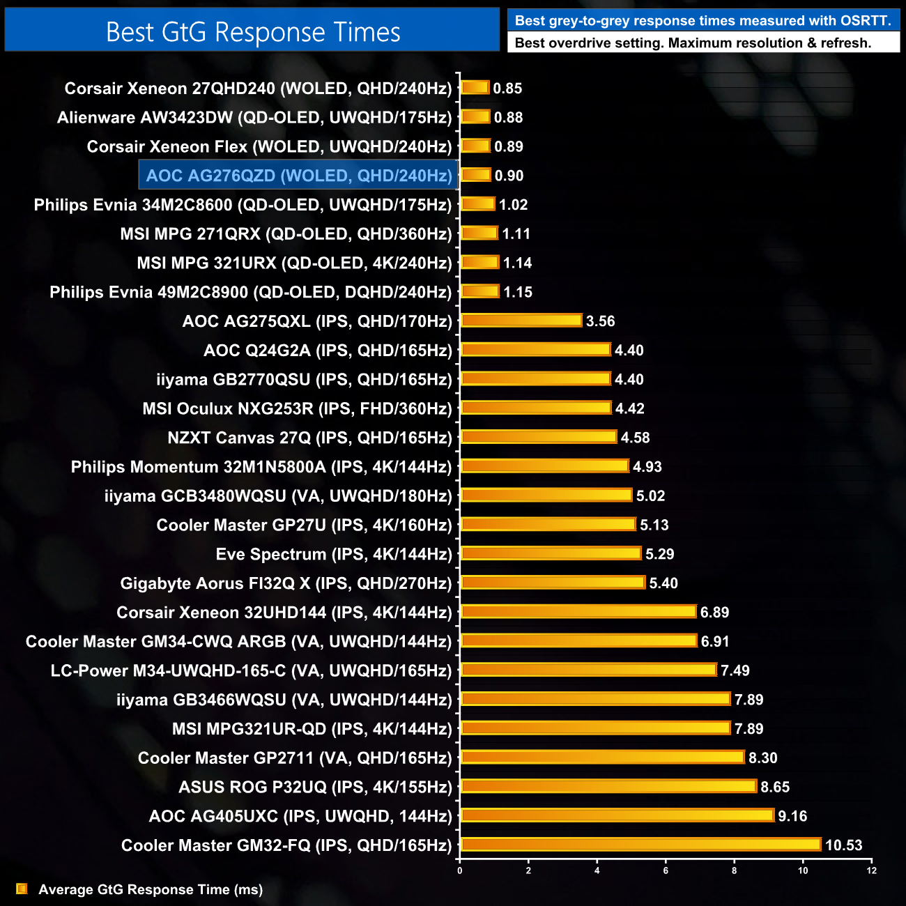 Overall then, the AG276ZQD delivers response times that are right up there with all the OLED monitors I have tested, and it's significantly faster than the next-best LCD screen.