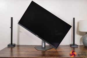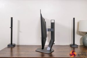 The stand does offer the full array of ergonomic adjustments too, including up to 130mm height adjustment, 18.5 degrees of swivel both left and right, tilt from -3.5 to 21.5 degrees, alongside 90 degree pivot functionality. Third party VESA 100×100 brackets are also supported via the included adapter plate.