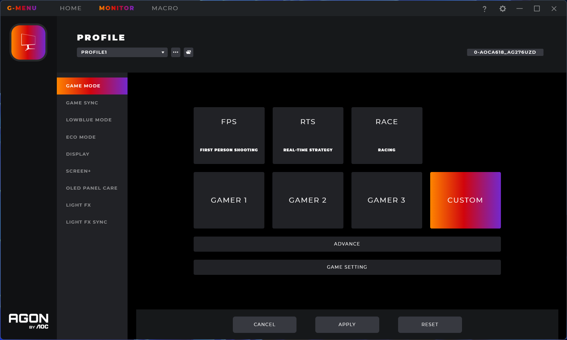 AOC does also offer its GMenu software though, allowing control over the same settings but directly from your PC. It can also be used to update the monitor's firmware, which is always a good inclusion.