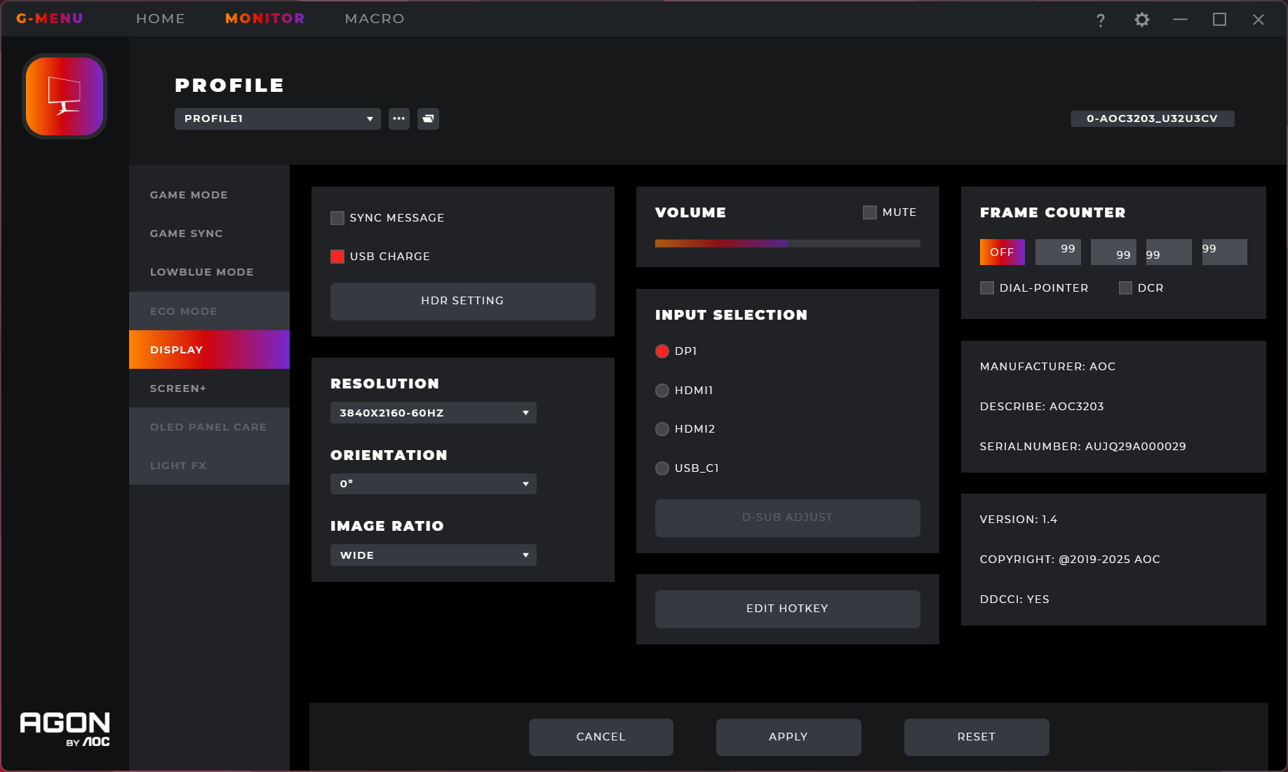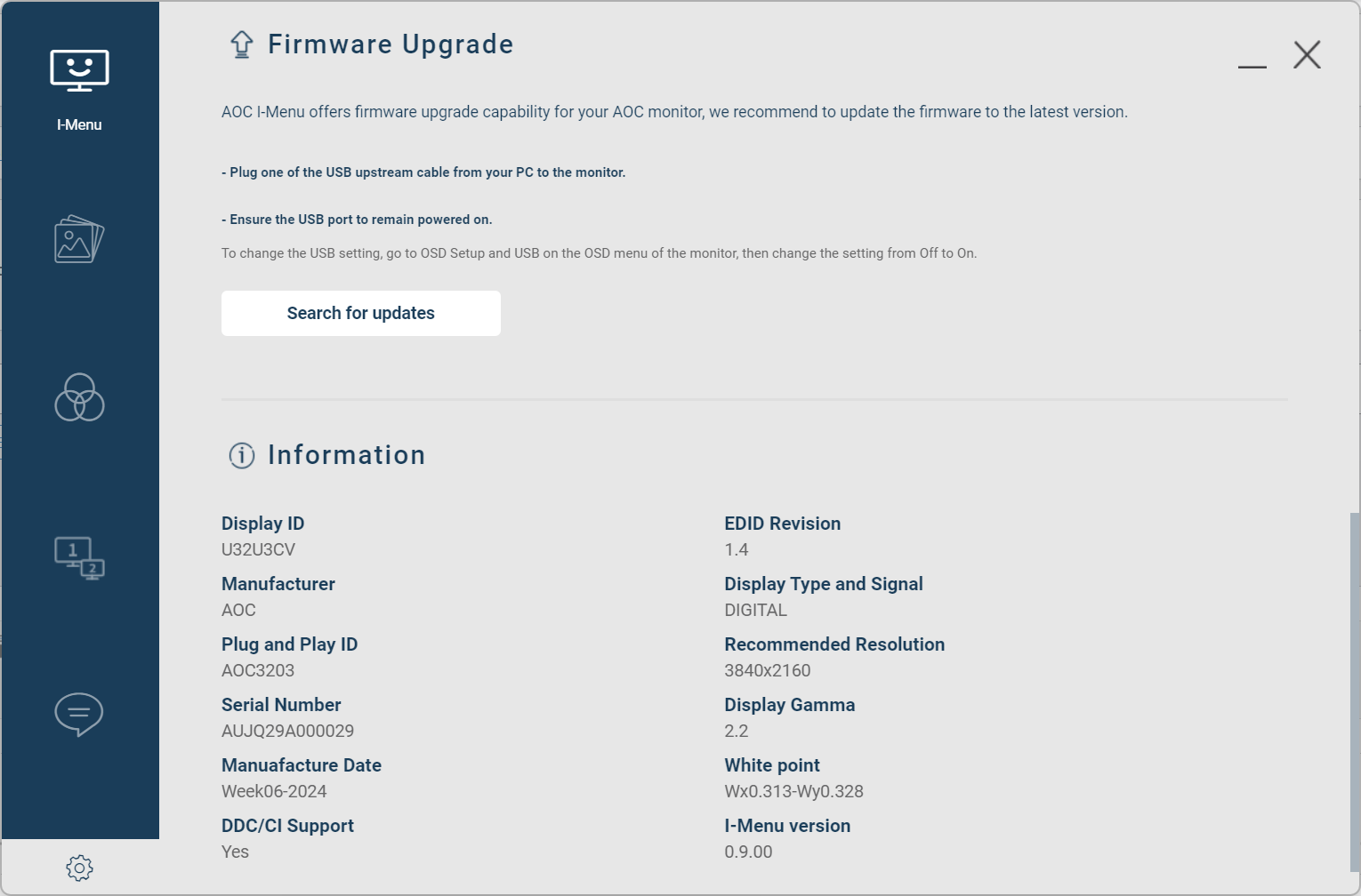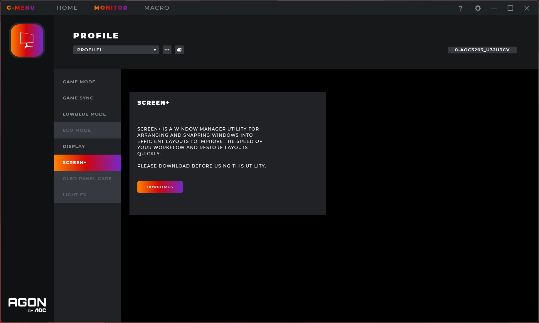 AOC also offers its G-Menu software on the downloads page for the U32U3CV, which is slightly odd given G-Menu is more of a gaming monitor utility. However, it does work with this screen, but its overall usefulness is fairly limited – though AOC tells me this may change with an upcoming firmware update.