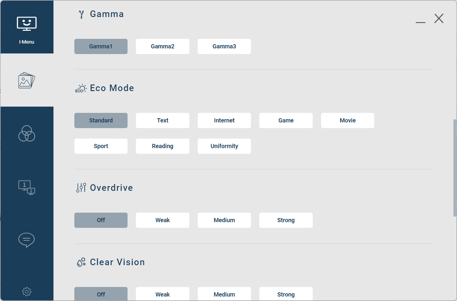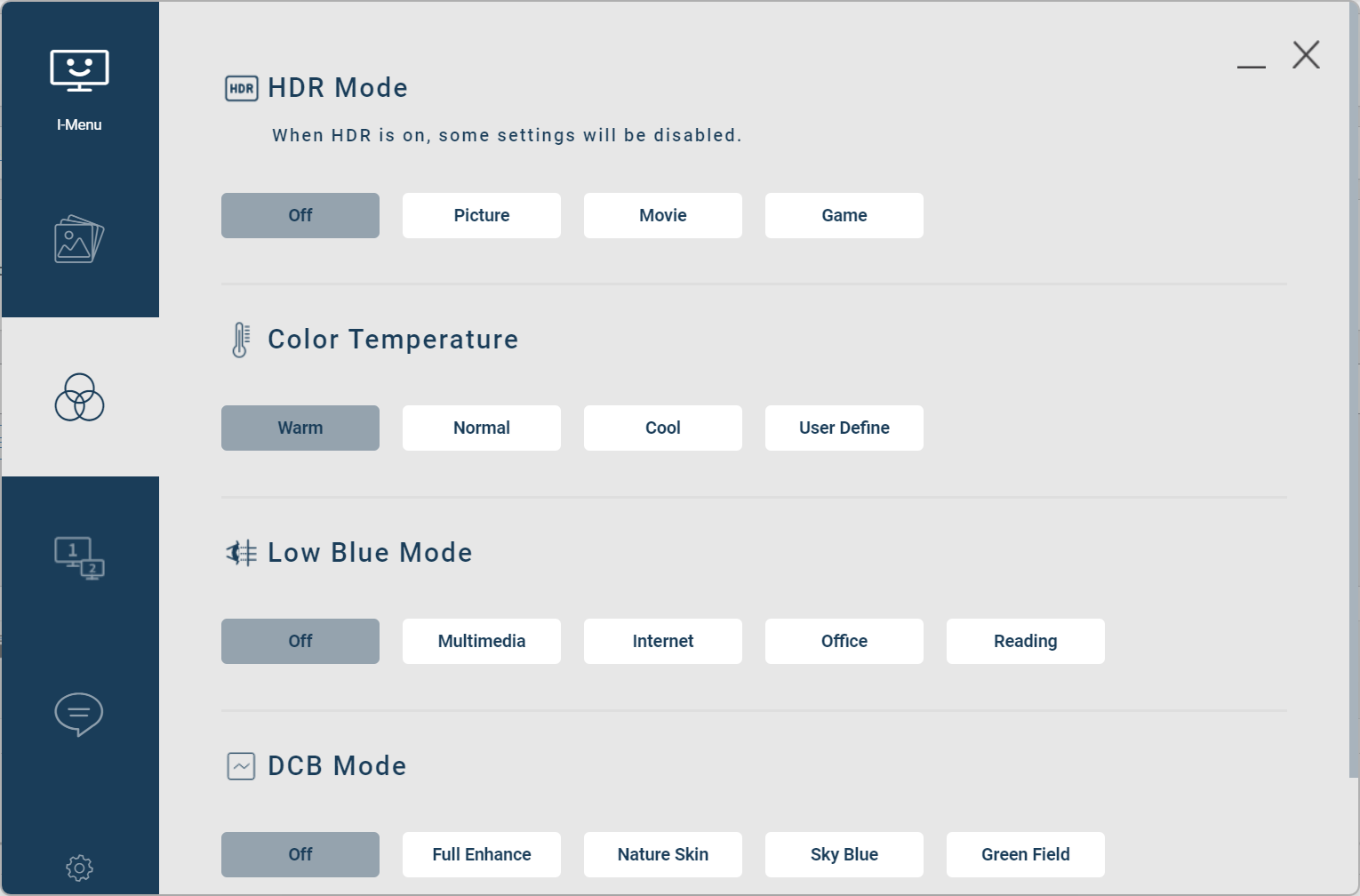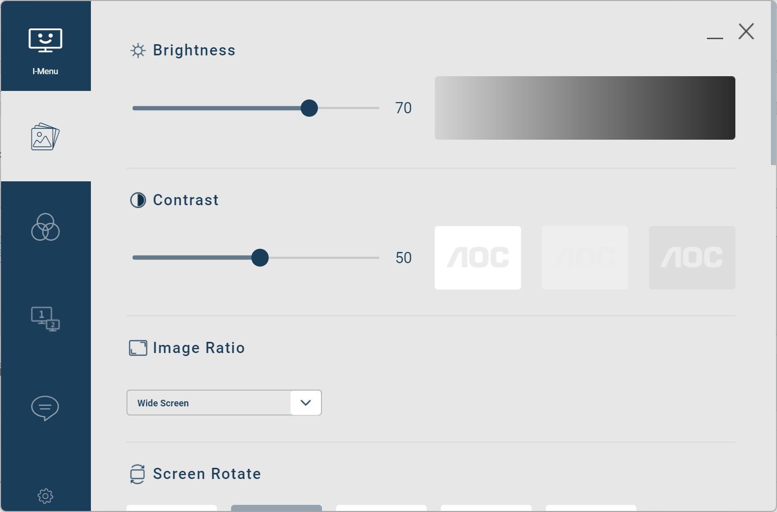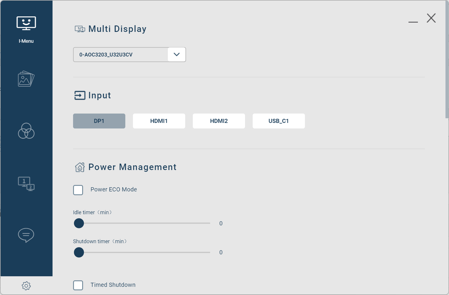 AOC also offers its I-Menu software as an accompaniment to the U32U3CV. Unfortunately this isn't quite so clean-looking as the new OSD system and it can be a touch slow on occasion. It does, however, provide more-or-less all the same controls you get from the OSD, but in software form, so that could be useful for some. It's also required to update the monitor's firmware, a feature we always like to see.