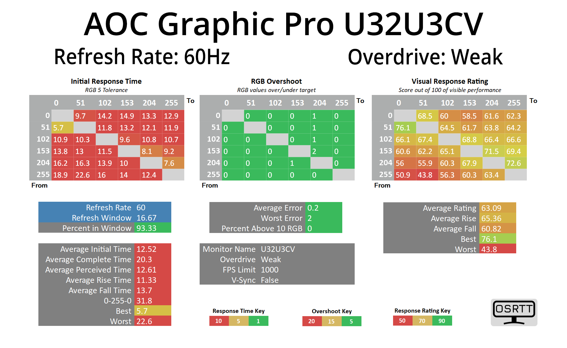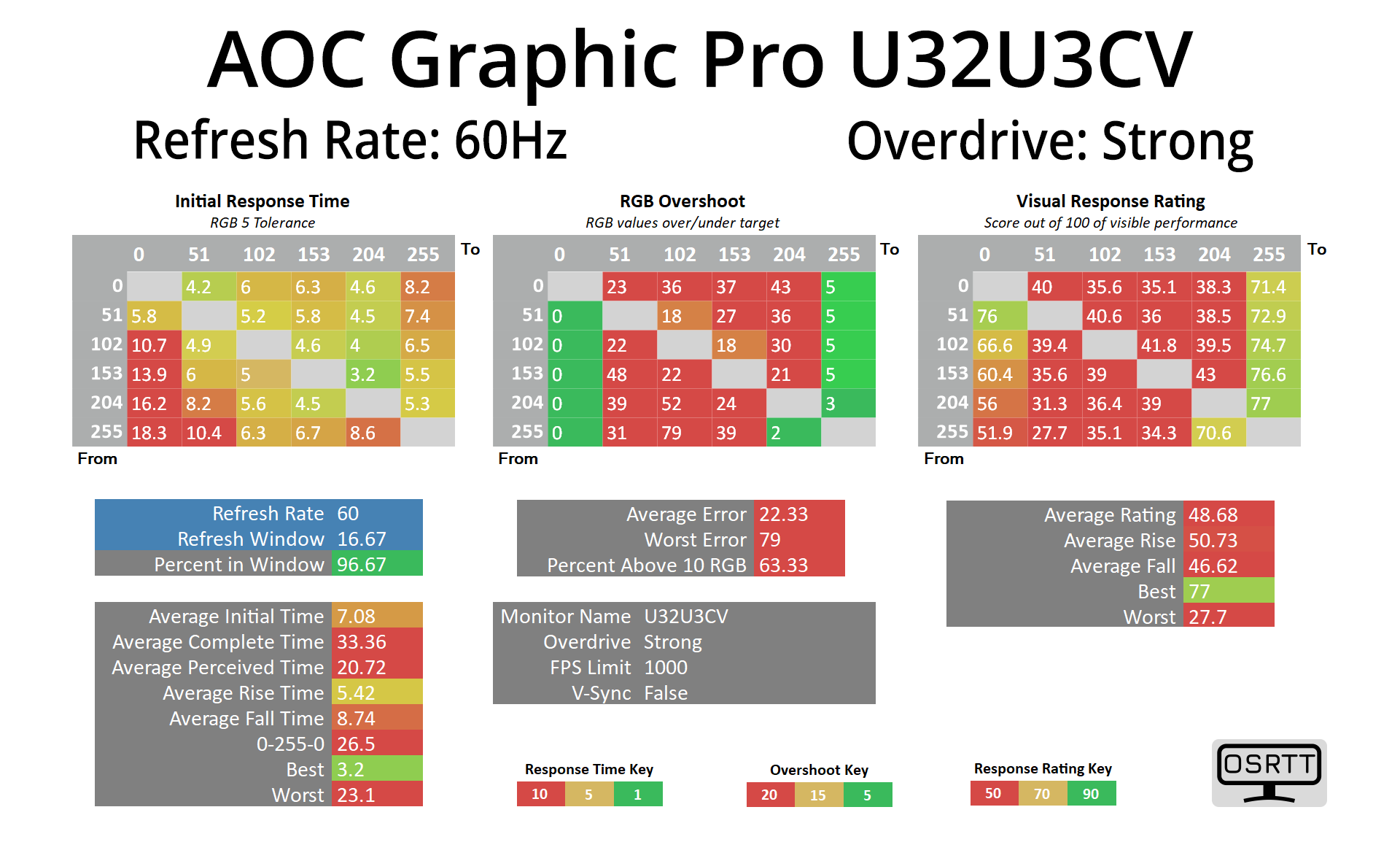 We test the U32U3CV at 60Hz, using all four of the overdrive settings found within the OSD.