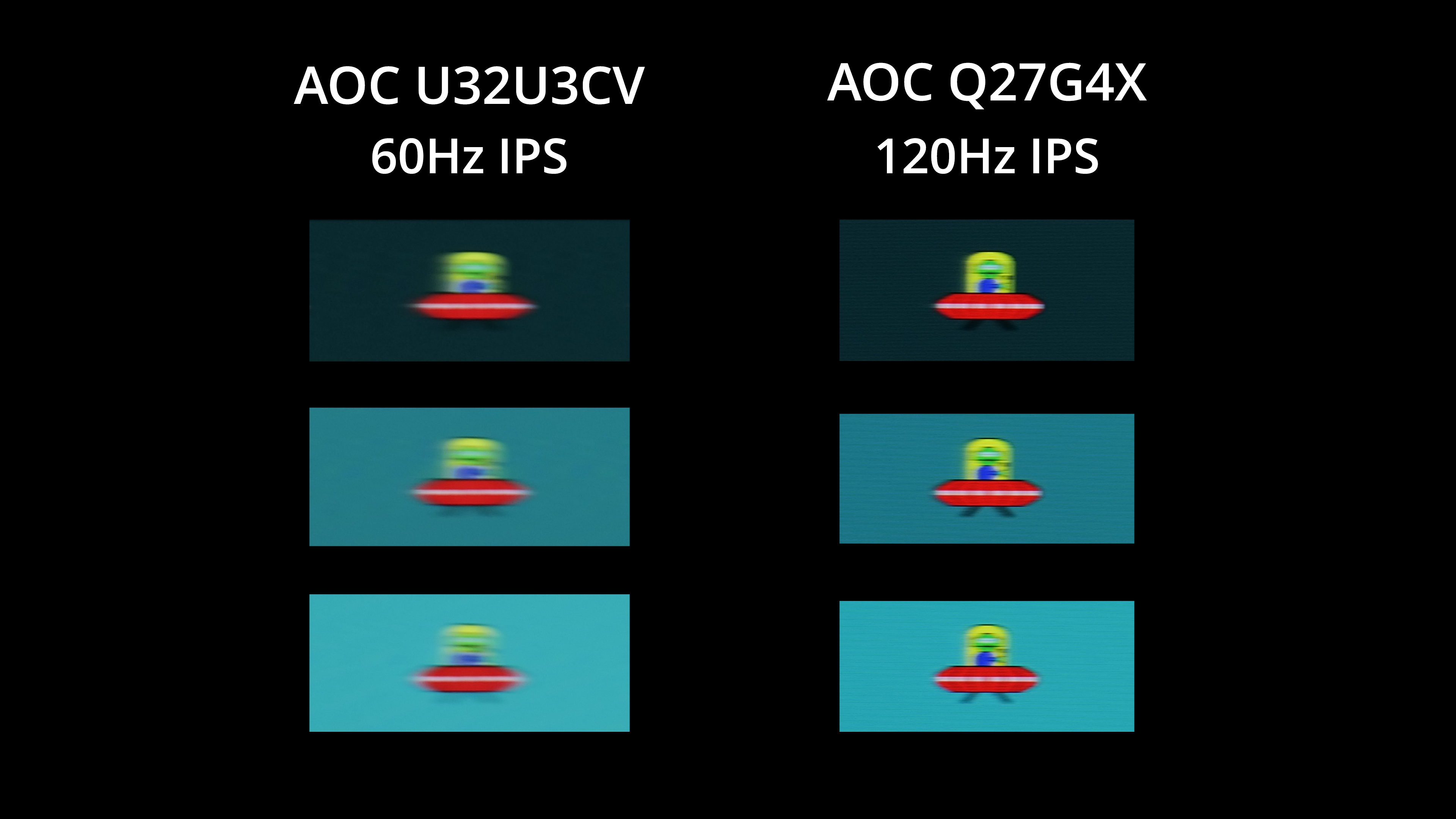 I've also included this motion clarity example, just as we did in the ProArt PA27JCV review. We're comparing the U32U3CV to the AOC Q27G4X, a budget 1440p 180Hz IPS screen which I ran at 120Hz for the purposes of this test.