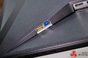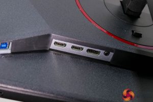 As for connectivity, we find two HDMI 2.1 and one DisplayPort 1.4 video inputs, alongside a headphone jack.