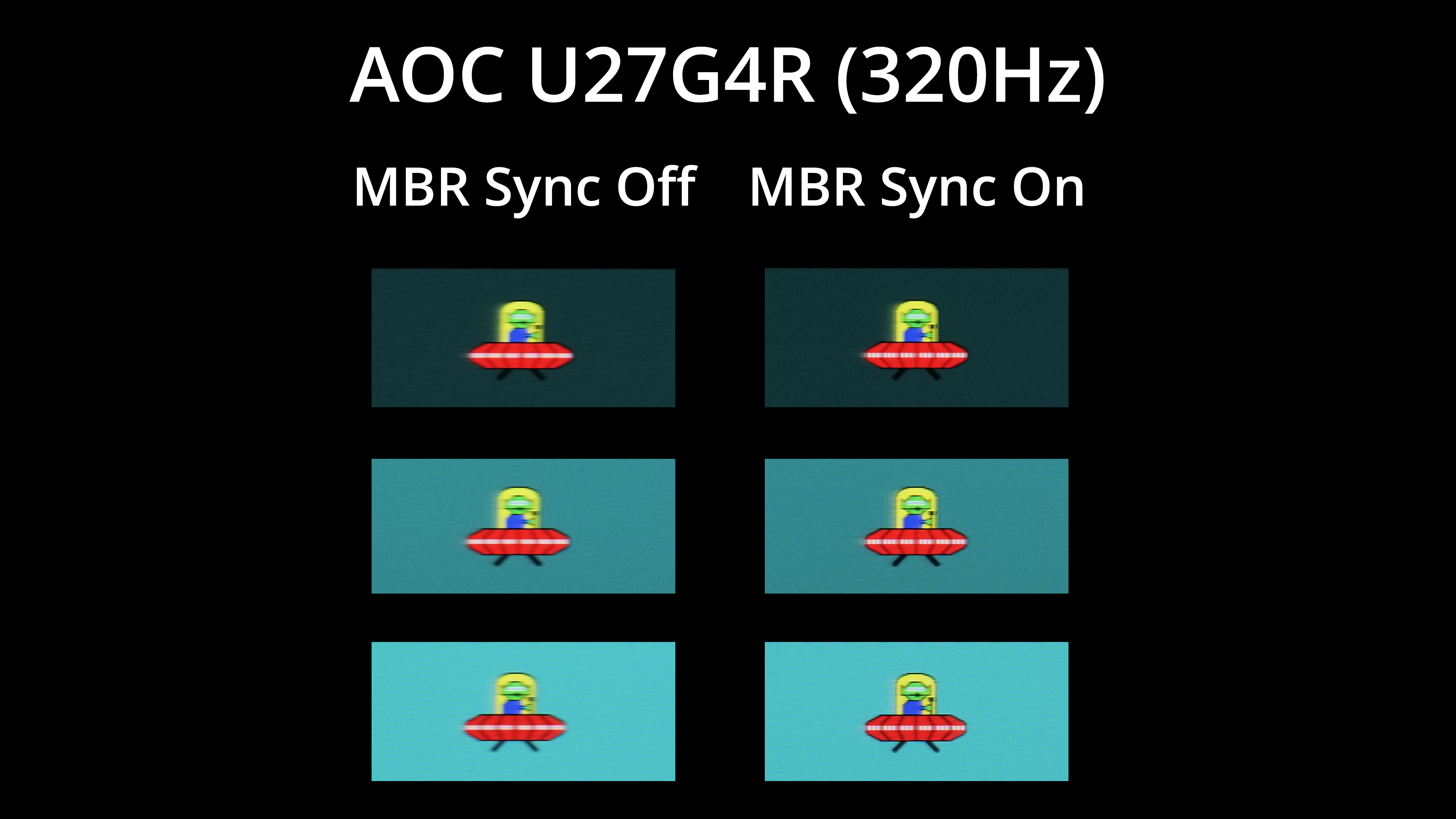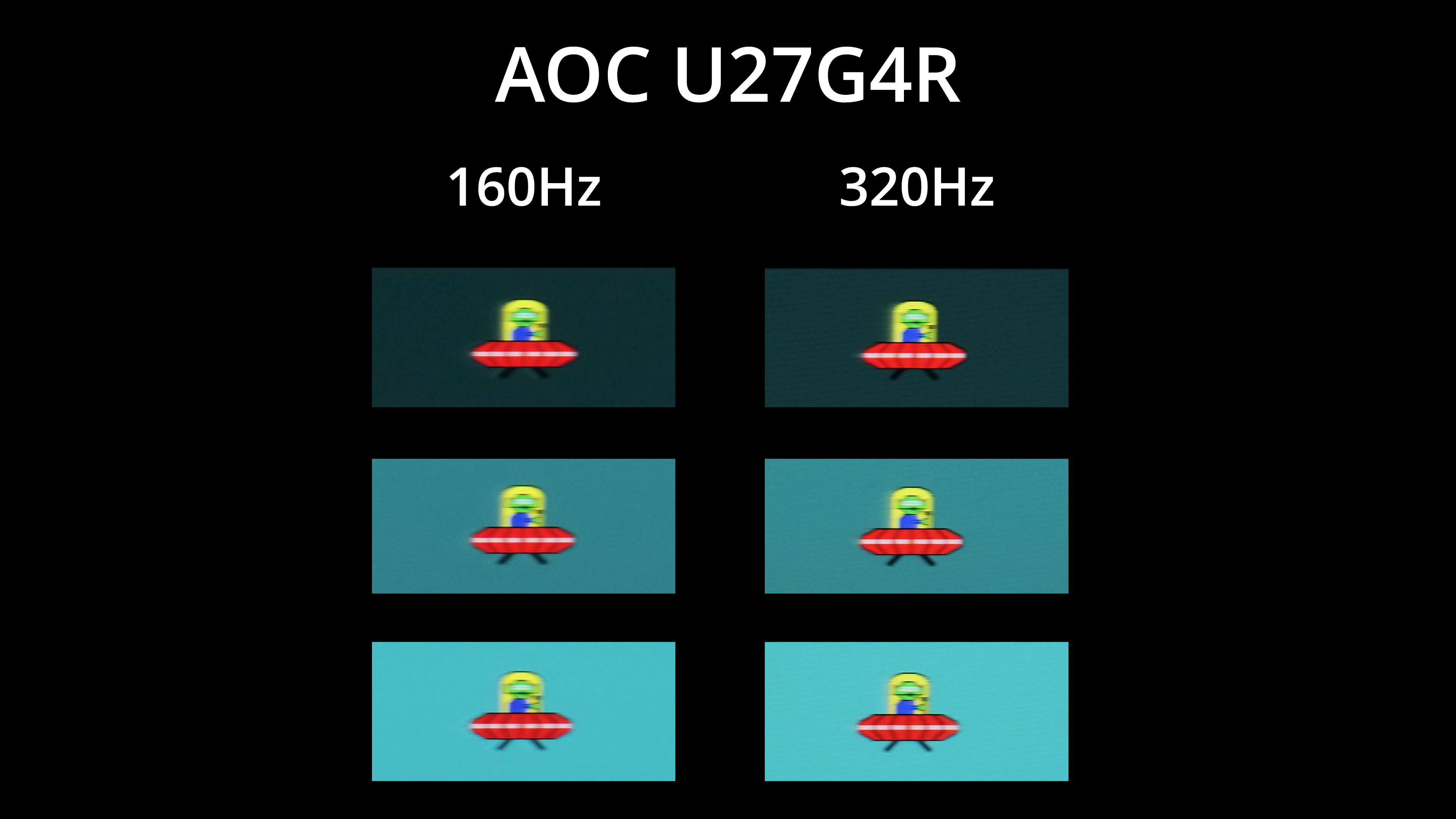 For a visual representation, we're using our pursuit photos of the BlurBusters UFO test. First things first, we do see an improvement in overall clarity, with less motion blur, when using the 320Hz mode instead of 160Hz.