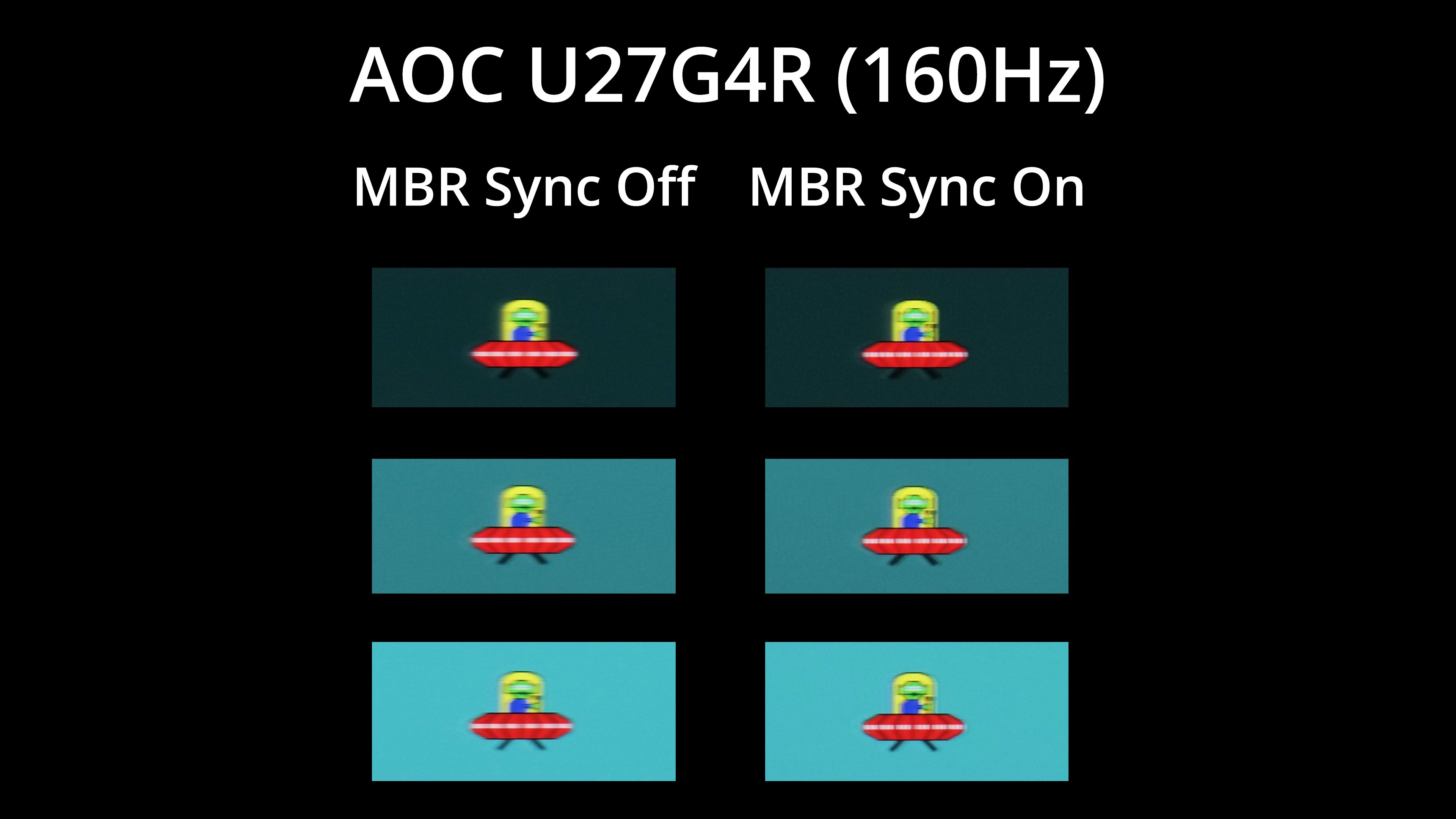 There is another twist though, as AOC also offers MBR Sync – it's backlight strobing implementation. At 160Hz, this provides a noticeable boost to clarity, with only minimal signal crosstalk – so just a hint of a double image, but I think it's well worth using if you don't mind that.
