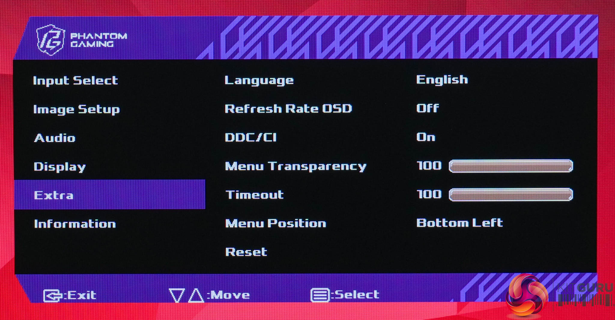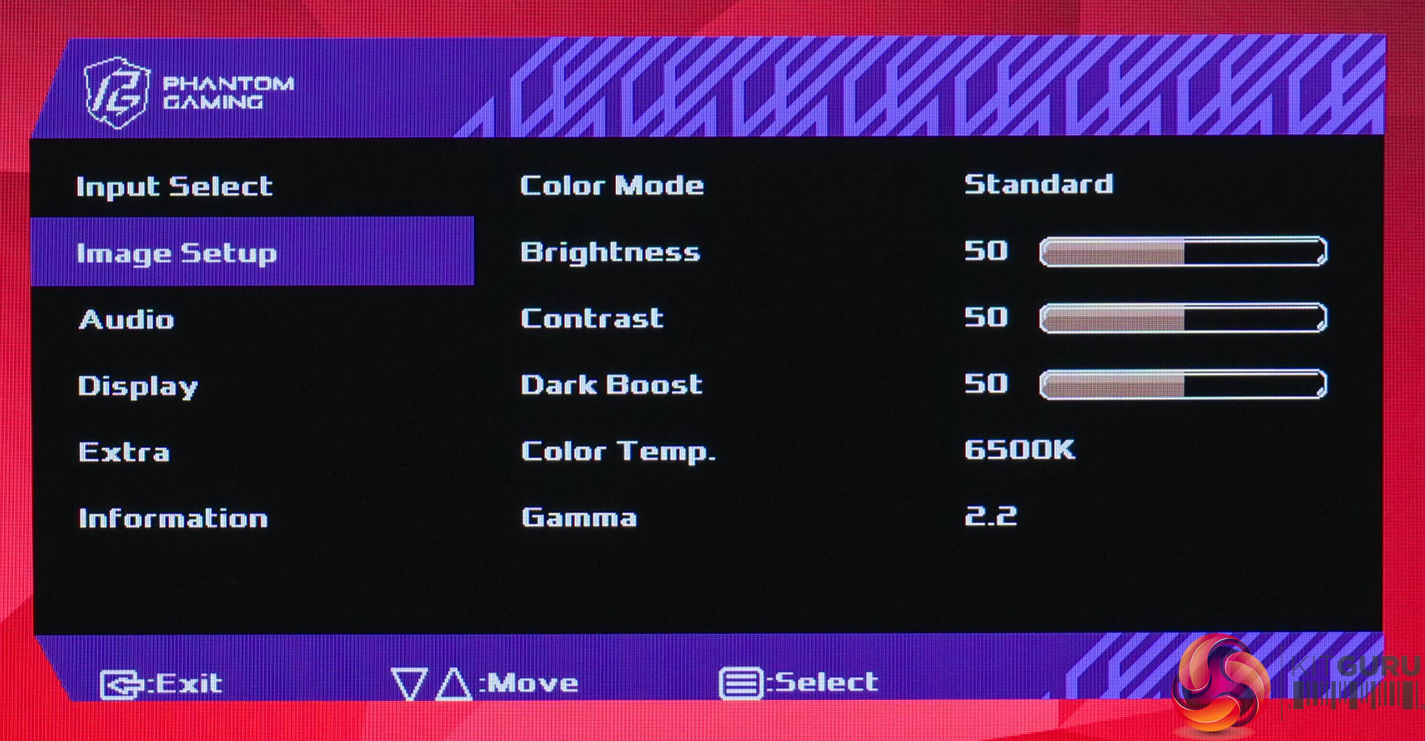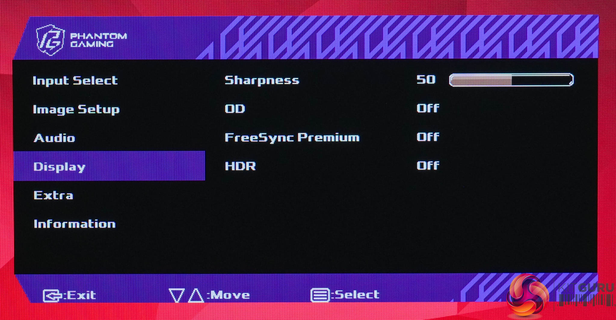 As for the OSD itself, everything is split over six main tabs, and I have to say not only does it look very dated, but it's lacking a number of features I'd expect from a modern gaming screen. There's no sRGB emulation mode for instance, nor are there standard gaming-oriented features like an on-screen crosshair, different presets for different game genres, or sniper-style view modes. It offers options for adaptive sync and three overdrive modes, and that's about it – so definitely work to be done here. Hopefully the default settings can deliver the goods, as there's not much room for error!