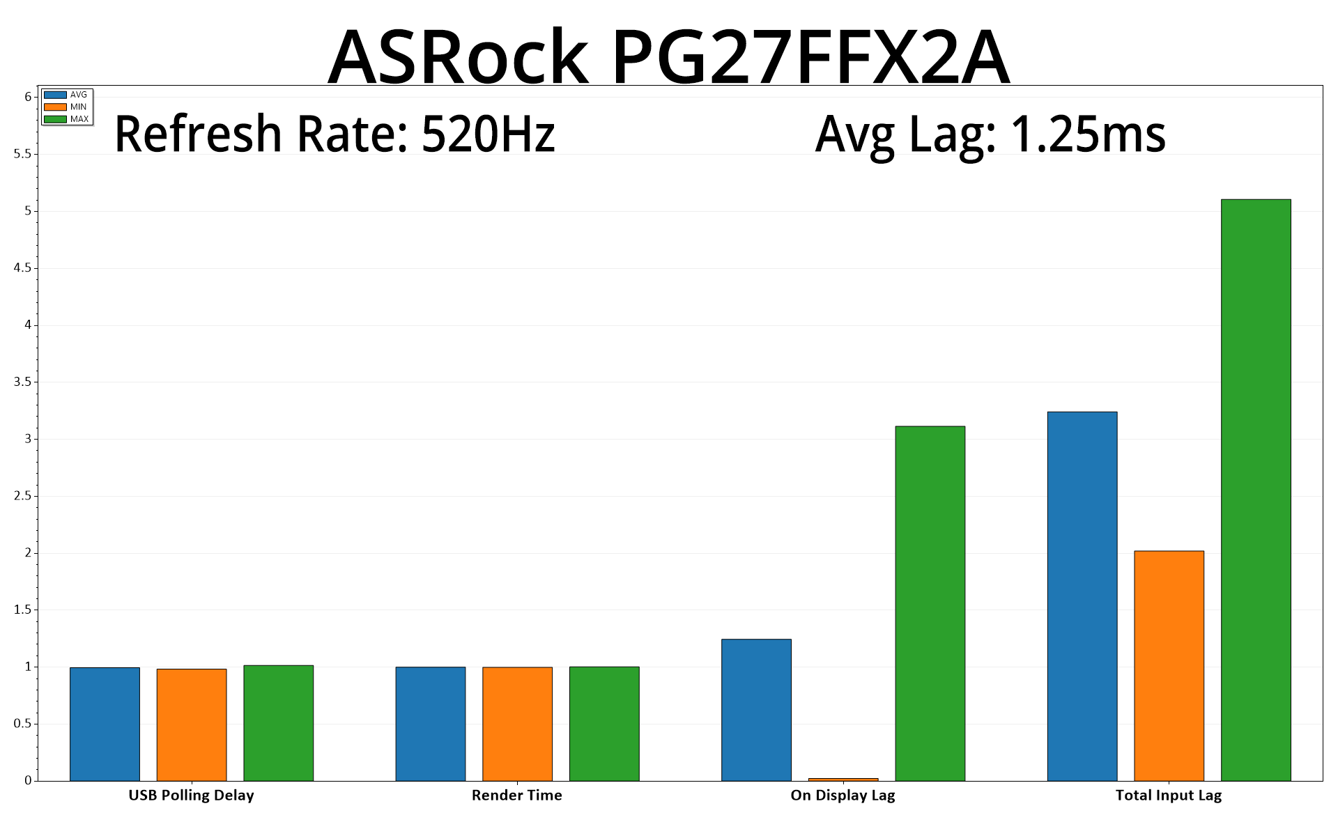 One other benefit to such a high refresh rate is that input lag is very low indeed at just 1.25ms, so that's just a little over half a frame at 520Hz – certainly not something I'd notice in practice!