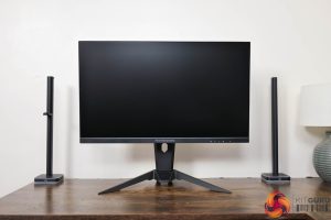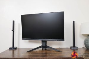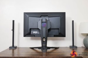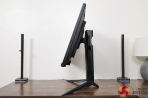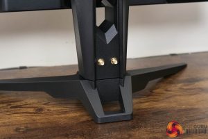 The stand, you will note, is relatively chunky and that may well have something to do with the built-in WiFi antenna capabilities, though it also means the monitor feels reassuringly sturdy. ASRock is using a traditional v-shaped foot, and that measures approximately 45cm across.