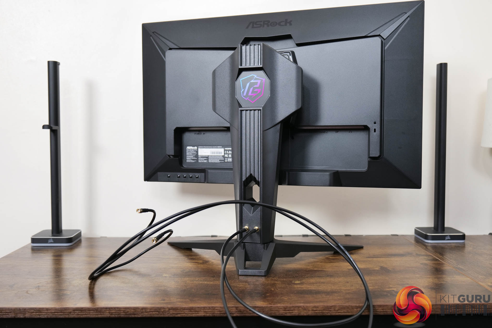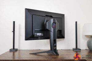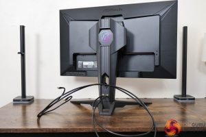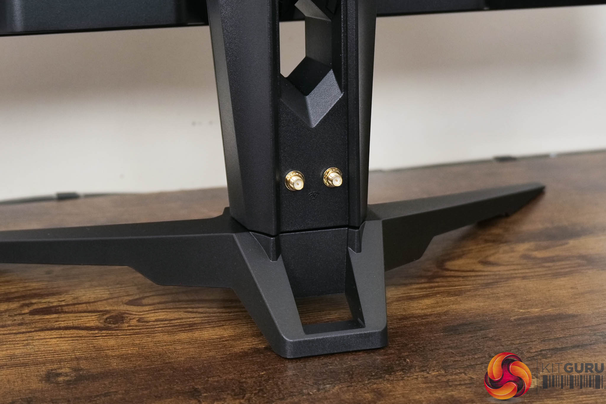 On the back of the stand you get a closer look at the WiFi antenna connectors, and the cables that come supplied with the monitor to screw into your motherboard or WiFi card.