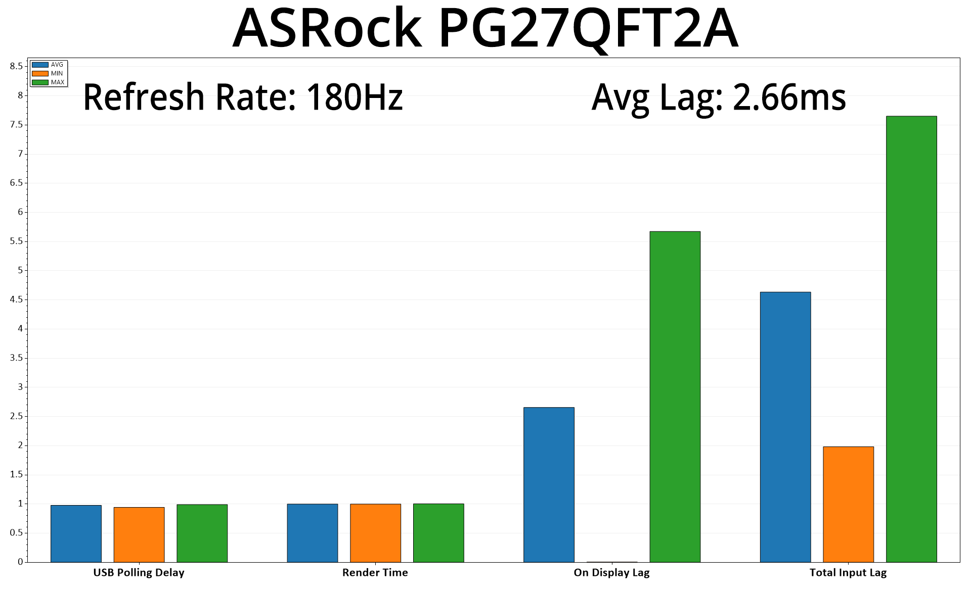 Lastly, for a look at input lag, we saw average display lag hit 2.66ms, so less than half a frame at 180Hz (5.56ms) – no problem at all.