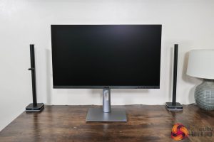 Kicking things off with a look at the design of the monitor, it's a very clean overall aesthetic. The front features a 3-side frameless design, along with a bottom chin which measures approximately 16mm thick. The chin, while made of plastic, has a brushed-effect finish which adds to the modern styling.