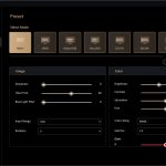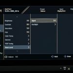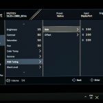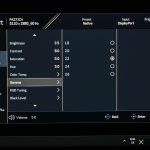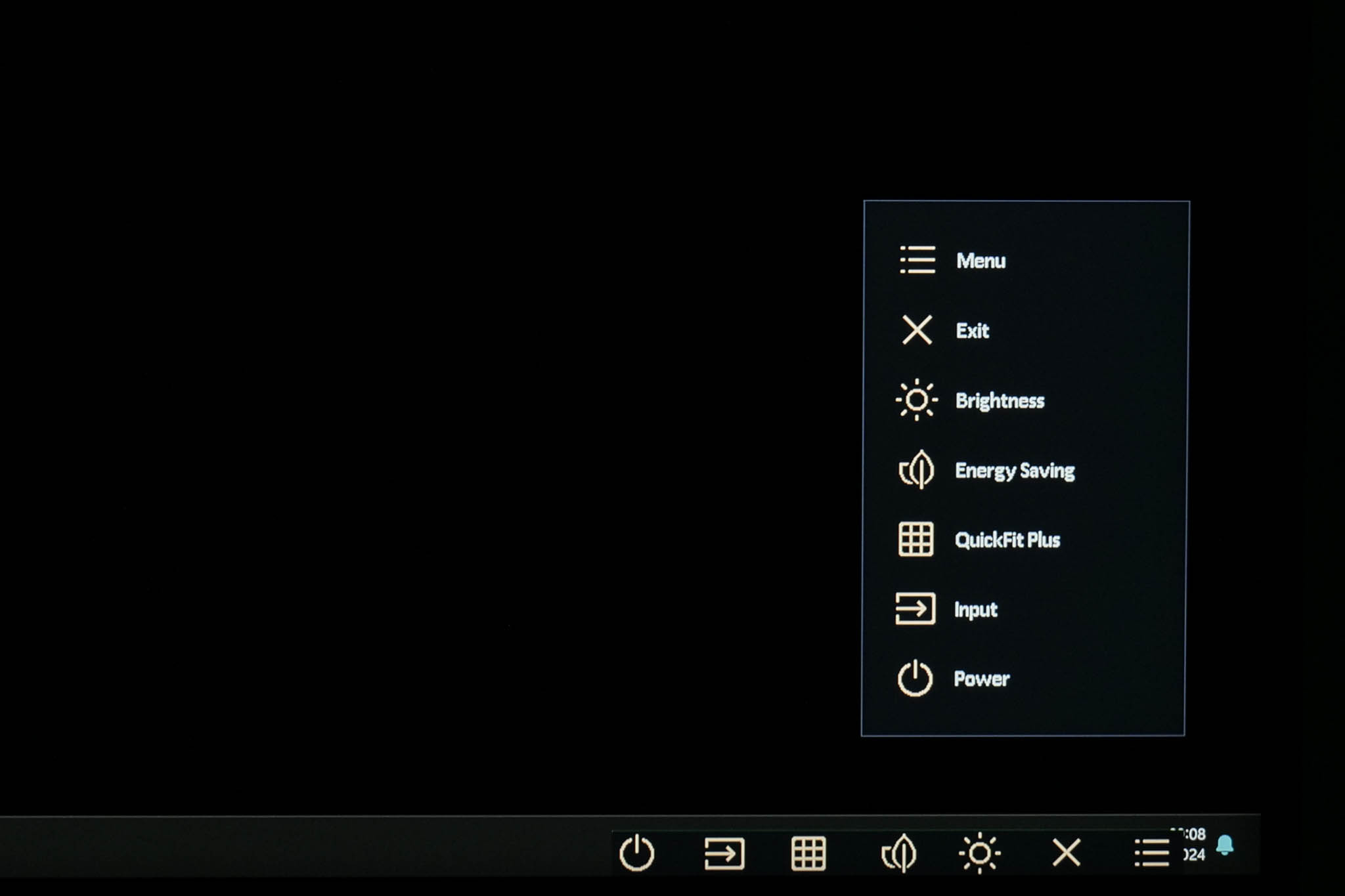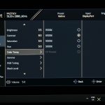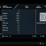 Clicking in the joystick brings up the main menu, with the first tab being the Preset settings, where you can choose between various colour space modes.