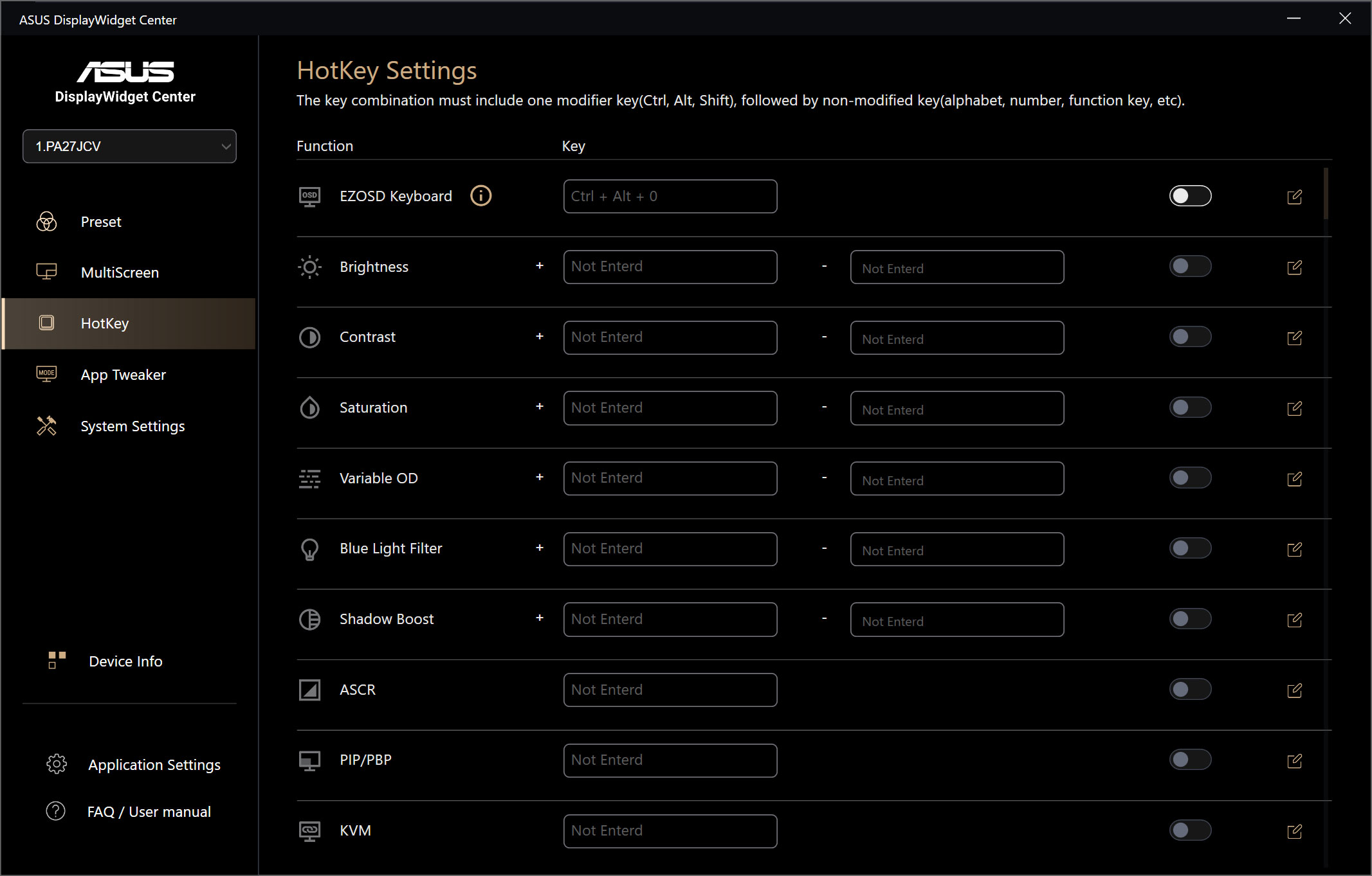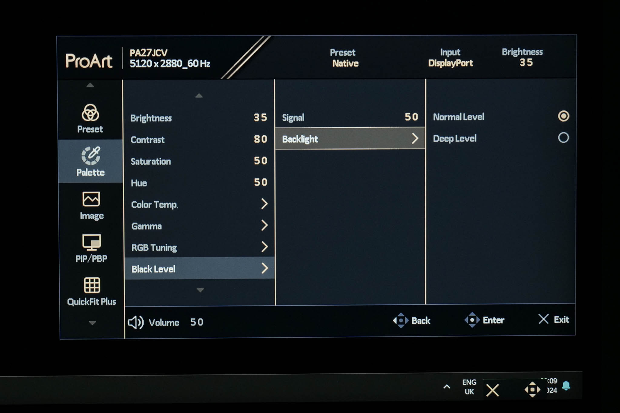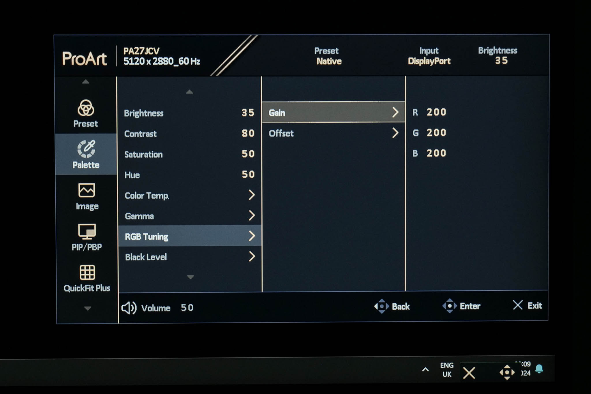 The ProArt PA27JCV OSD is split into eight main tabs, which we will break down below.