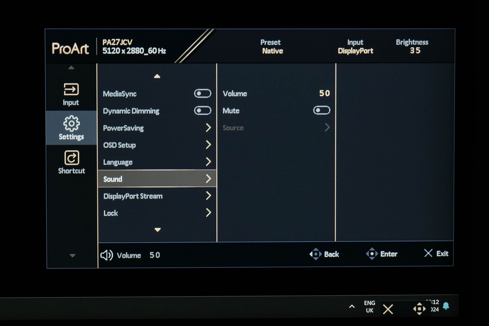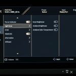Settings has the most, erm, settings to adjust and it's quite a varied spread. There are basic things like OSD timeout options, but also more advanced features including KVM setup, DisplayPort configuration and ASUS Light Sync, the latter being an interesting feature which leverages ambient light and backlight sensors to automatically fine-tune gamut and white balance (if you want that). You can also get an overview of the monitor's information and firmware version, or reset everything to factory defaults.