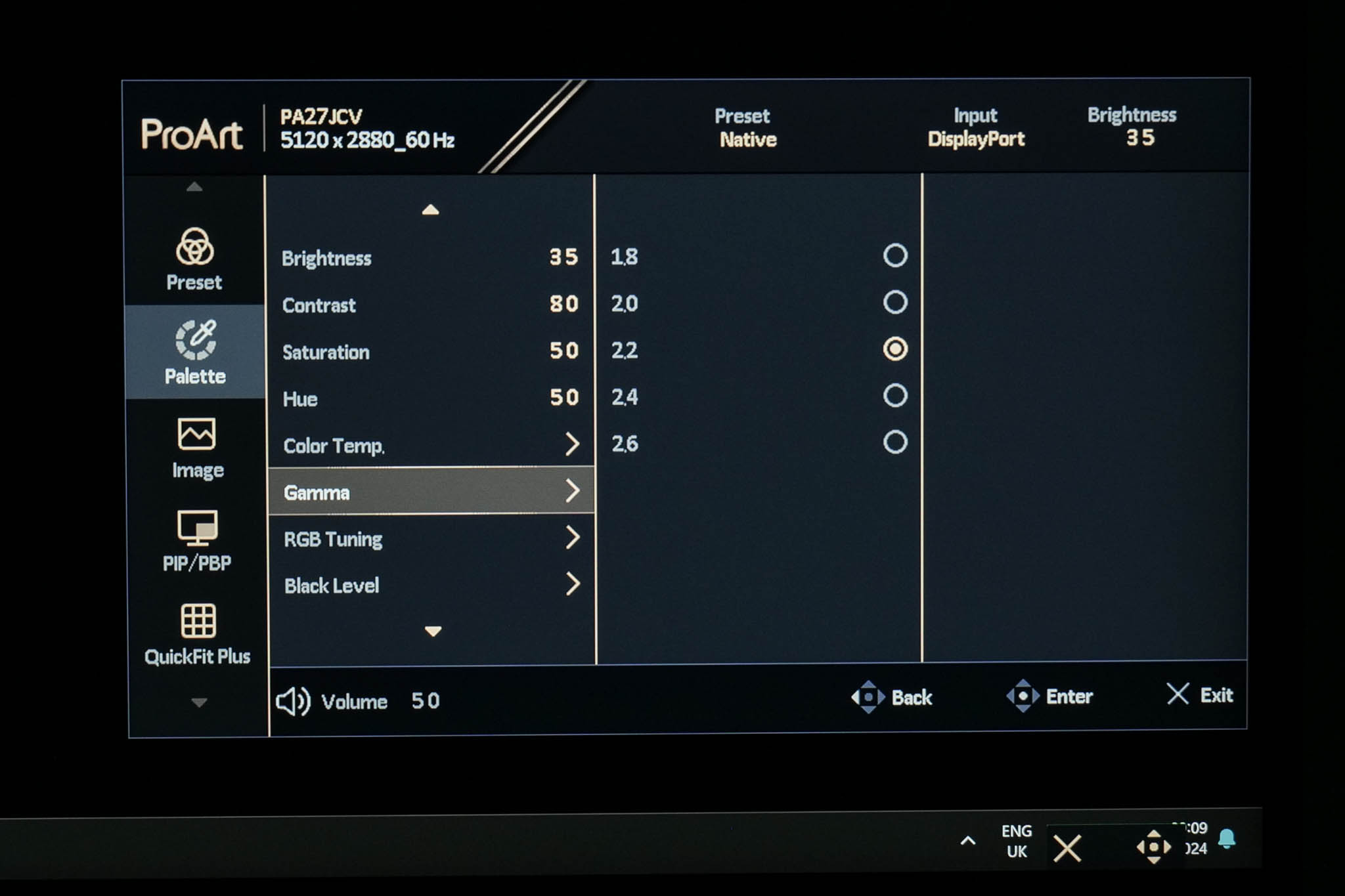 The next tab is called Palette, offering control over brightness and contrast, alongside gamma and RGB controls to manually adjust the colour balance.