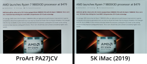 Given a key feature of the ProArt's display is the ‘LuxPixel AGLR (Anti-Glare, Low Reflection)' coating, I thought it was worth taking a closer look. This is quite a hard thing to test objectively, but fortunately I happen to use a 2019 iMac for most of my photo and video work here at KitGuru. This is also a 27in 5K IPS screen, but crucially it has a glossy finish, so I thought it'd make for a good comparison.