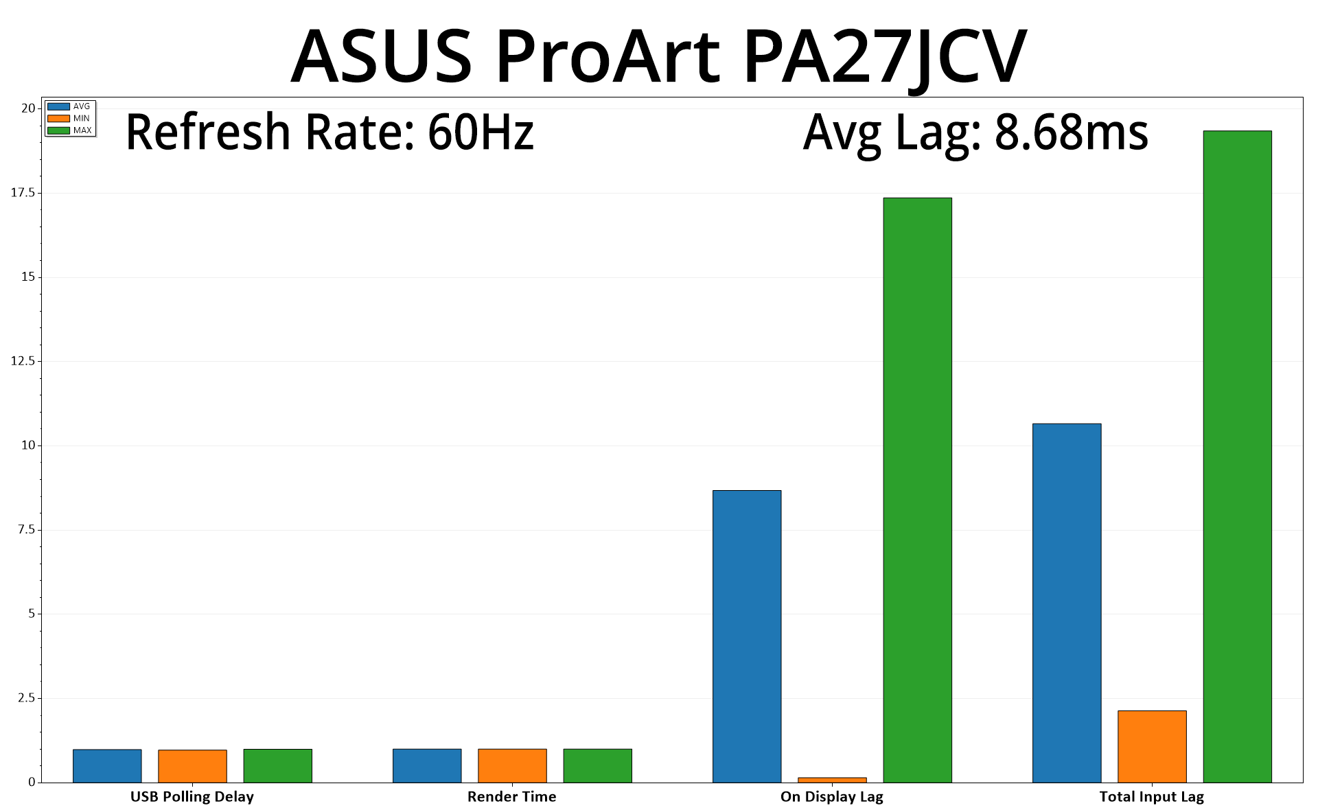 As expected from a 60Hz panel, there's more input latency than we'd typically see from the high refresh-rate monitors I usually review. Even then, the average lag of 8.68ms barely equates to half a frame at 60Hz, so it's nothing to worry about.