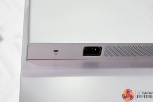 Just underneath the front bezel, we find a small section which actually houses a proximity sensor, and this is one of the ‘ASUS OLED Care' features, as the monitor detects when you are not at your desk and dims the screen, before turning it off after a short period of time – it works fantastically well in practice.