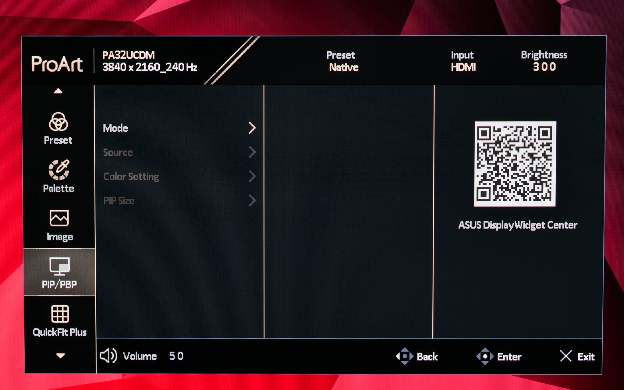 The next tab is quite self-explanatory, offering PIP/PBP settings if you have a second source connected to the monitor.