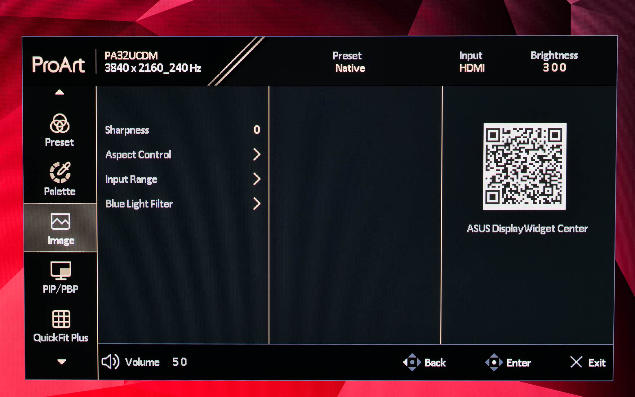 Then there are the Image settings, which includes sharpness, aspect ratio adjustment, input range control, alongside a blue light filter.
