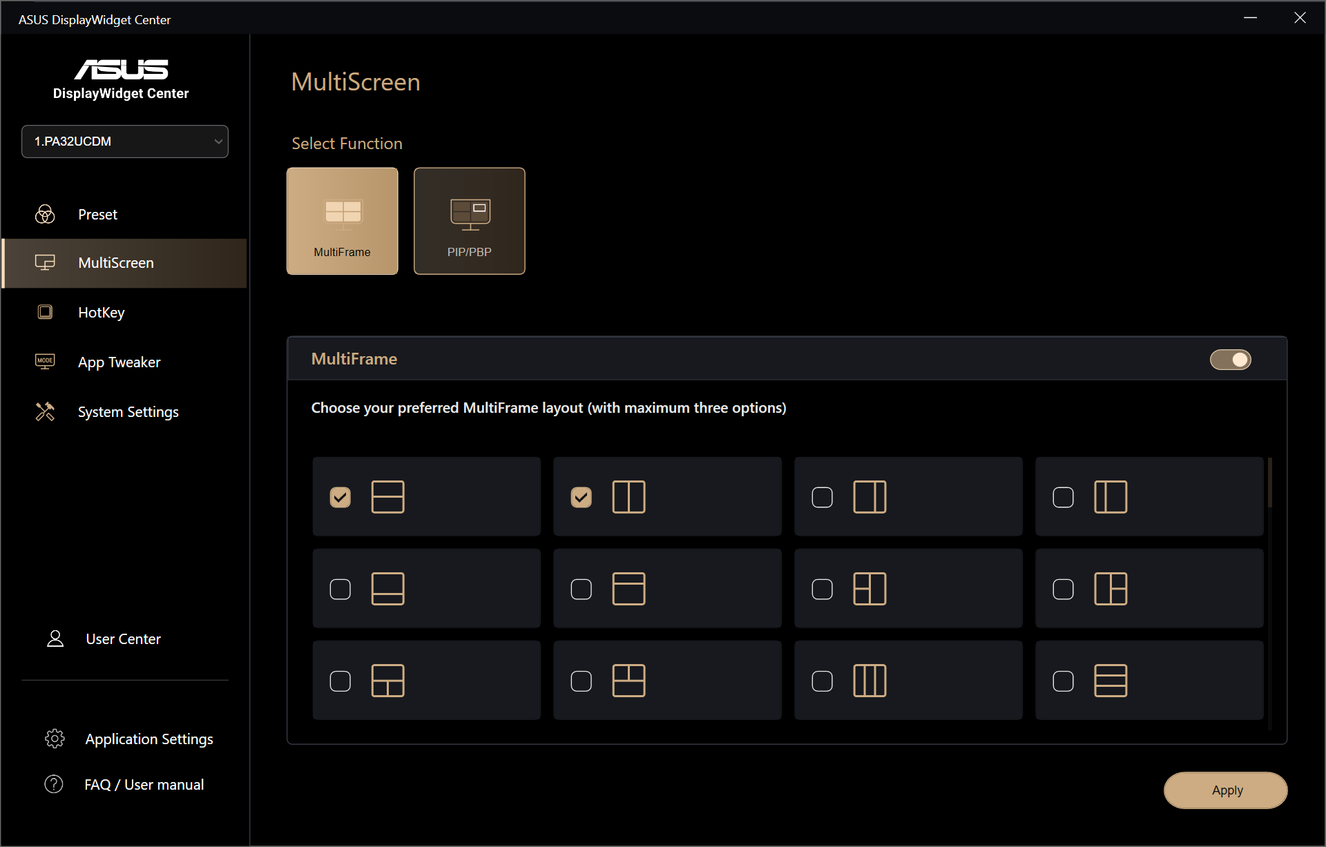 For those interested, ASUS also provides support for its DisplayWidget Center software. This simply gives you control over the key monitor settings from your PC, so you don't have to fiddle with the OSD to quickly adjust brightness or choose a different colour mode.