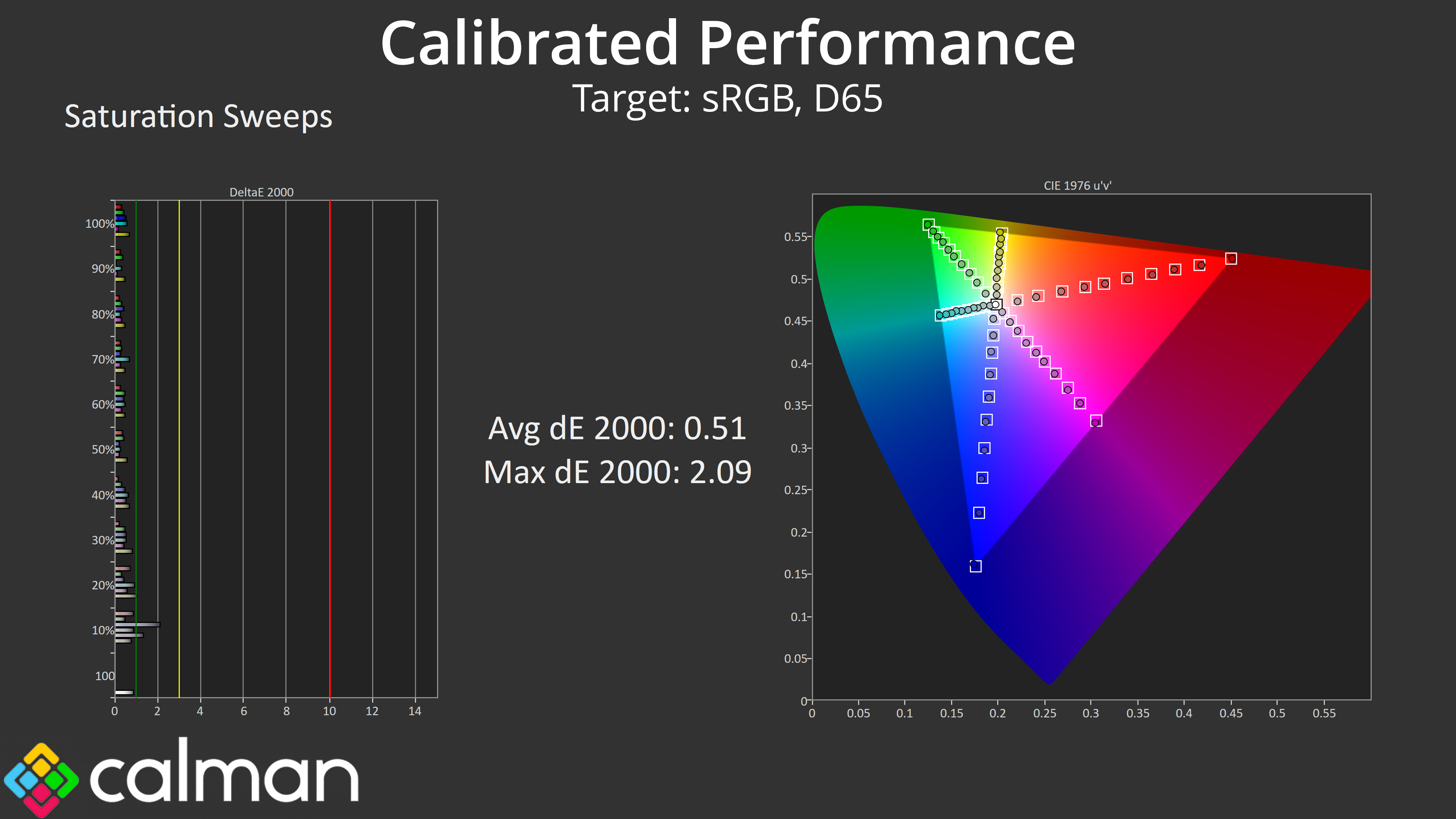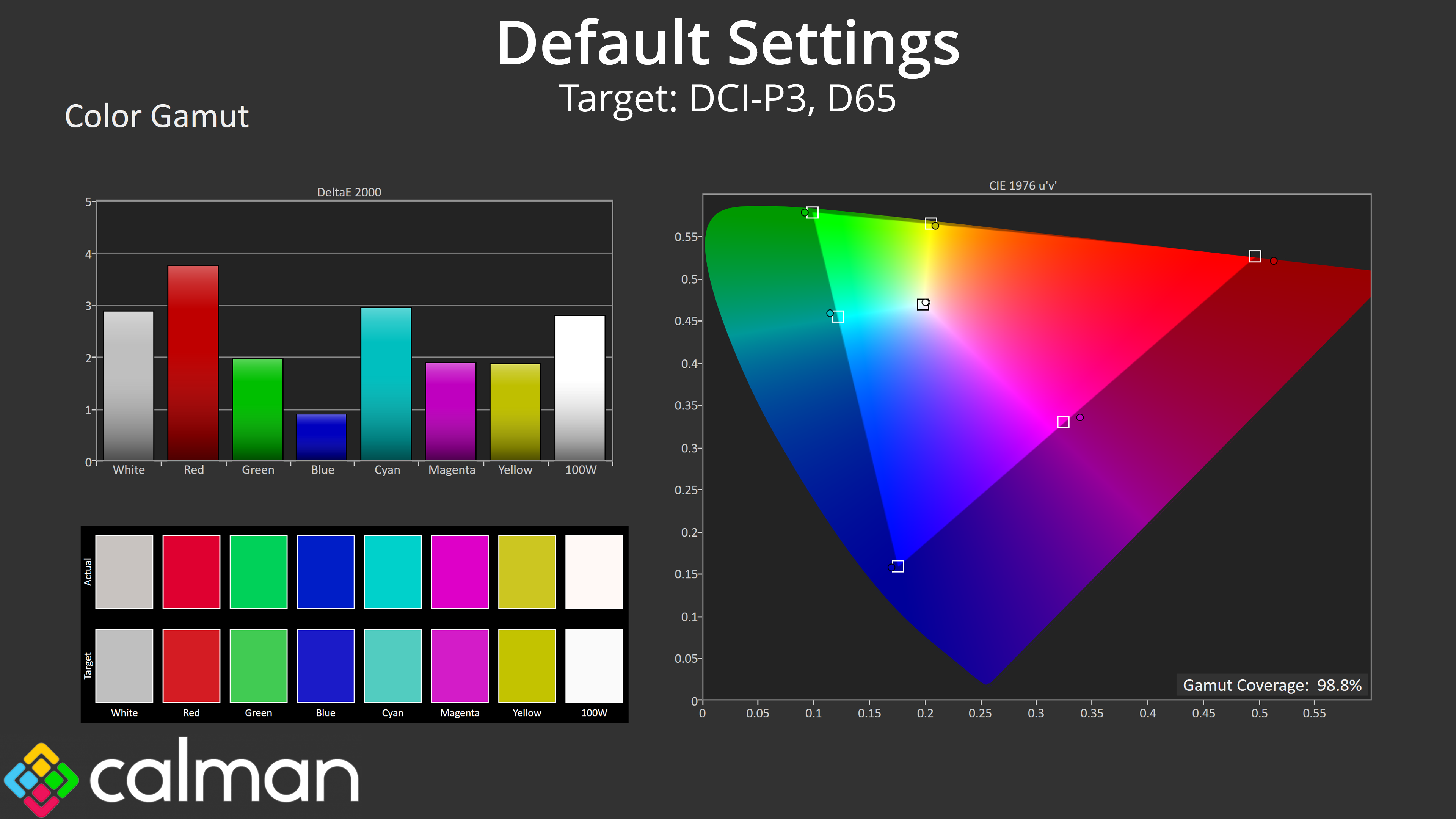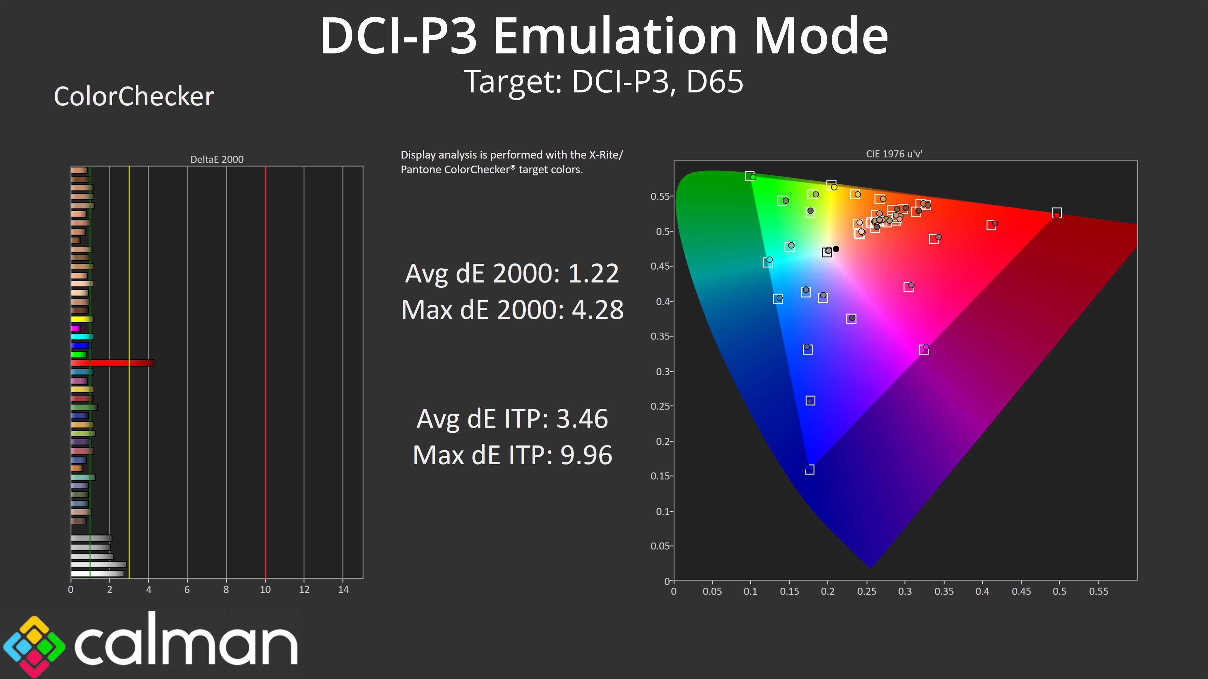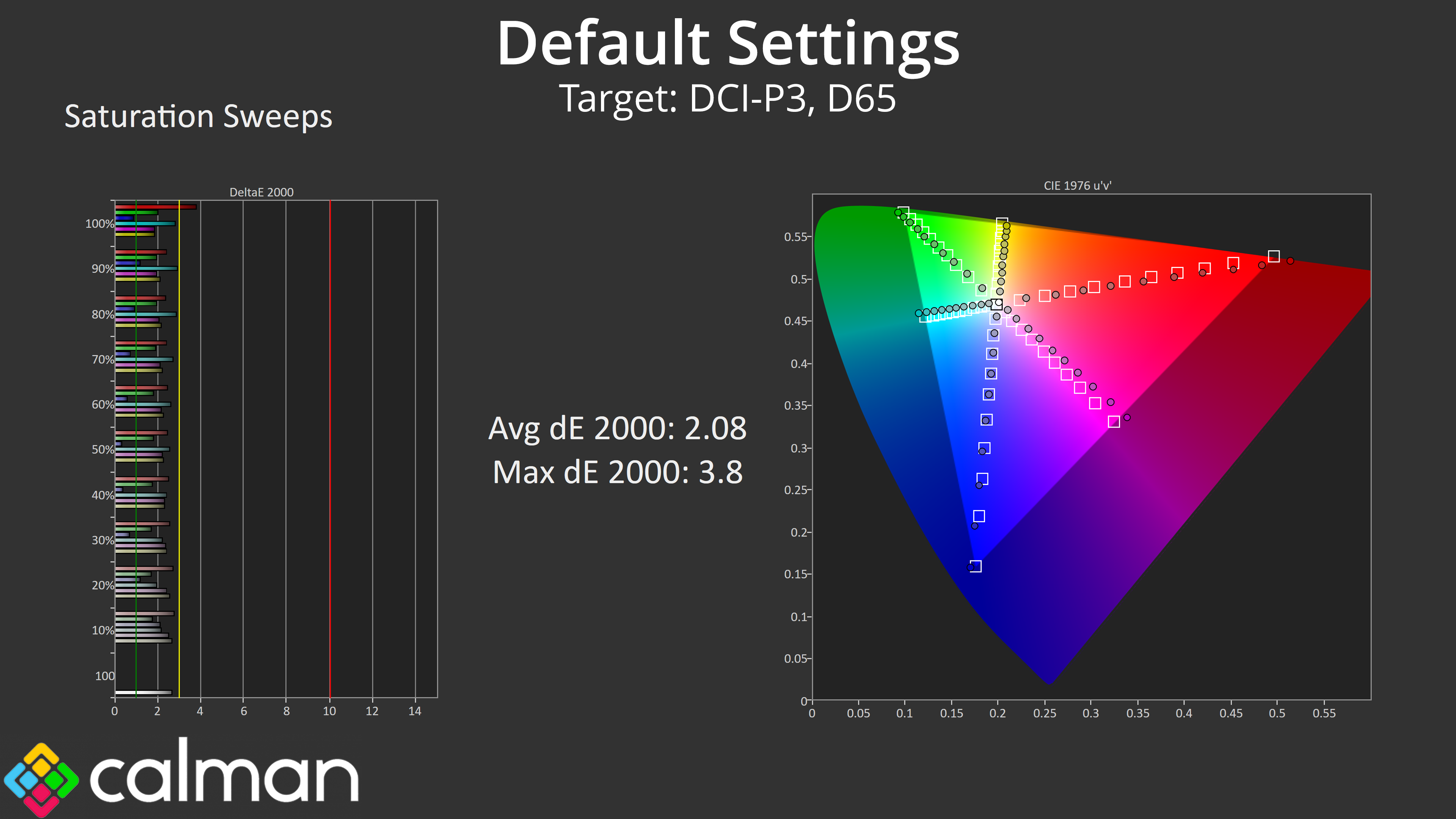 Relative to the DCI-P3 space however, things are more accurate with an average dE of 2.08.