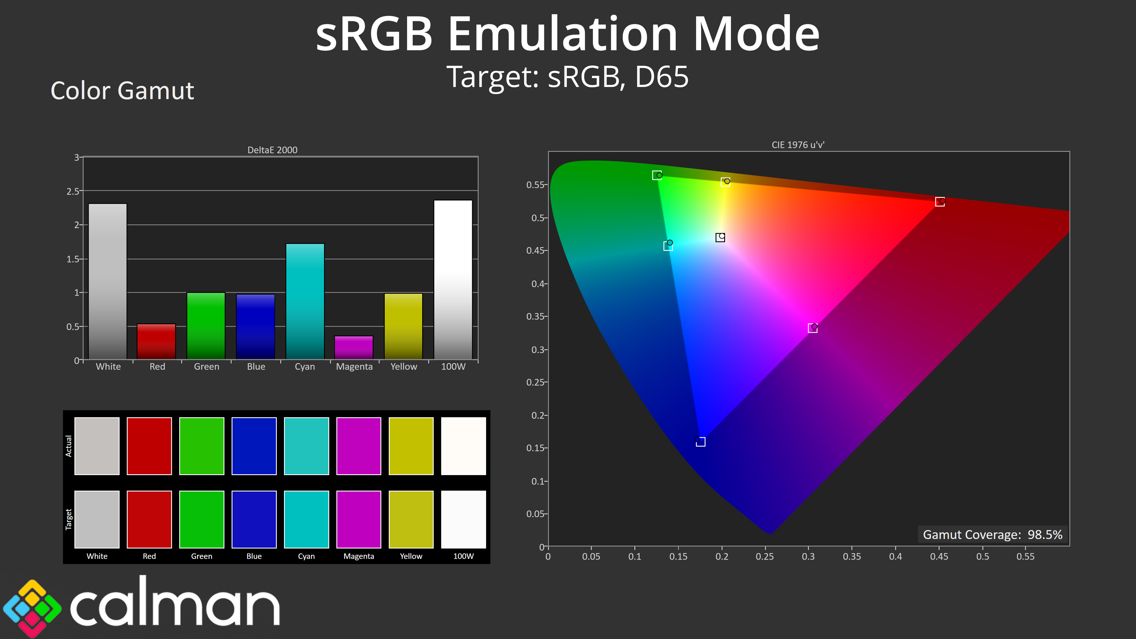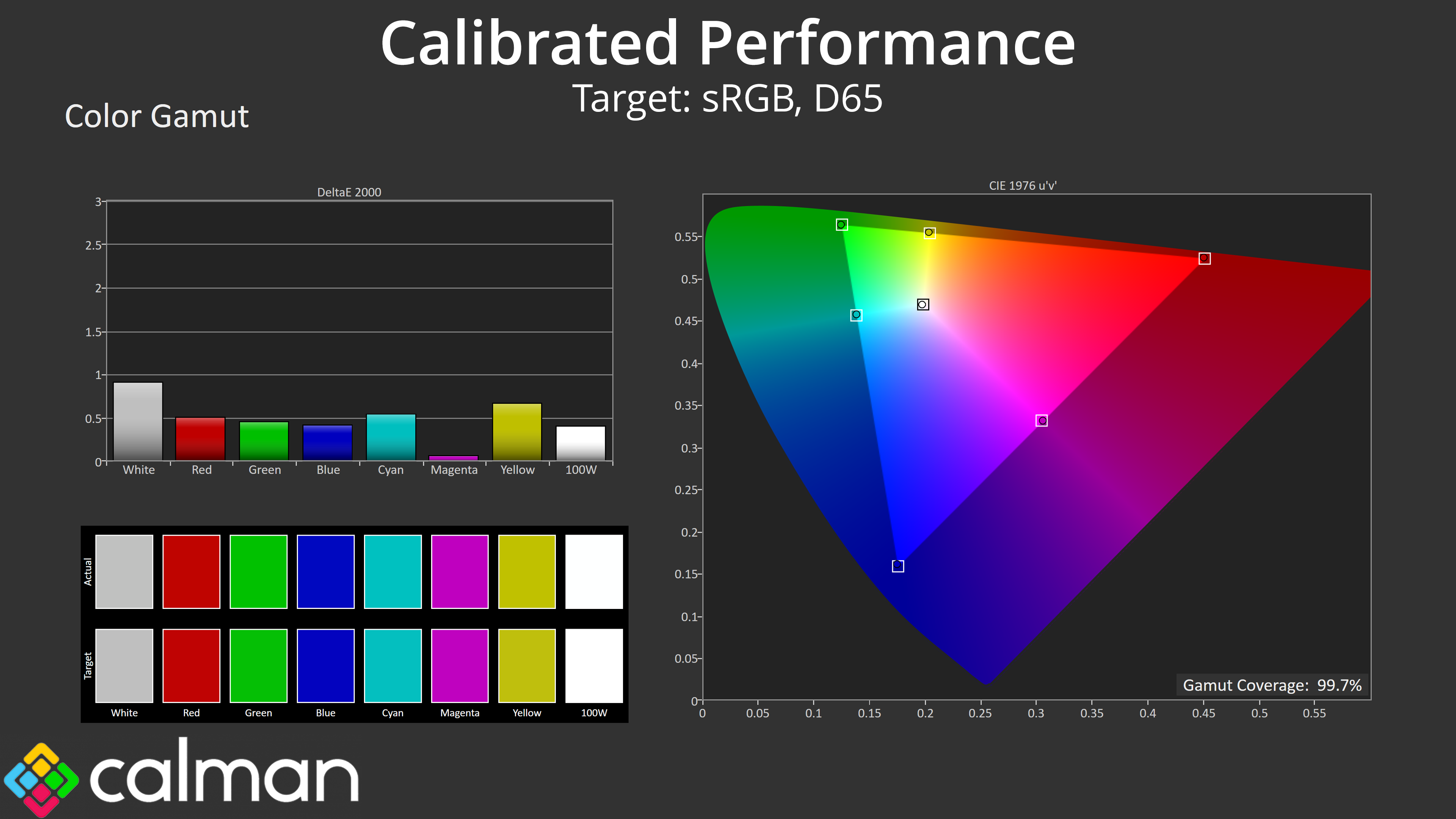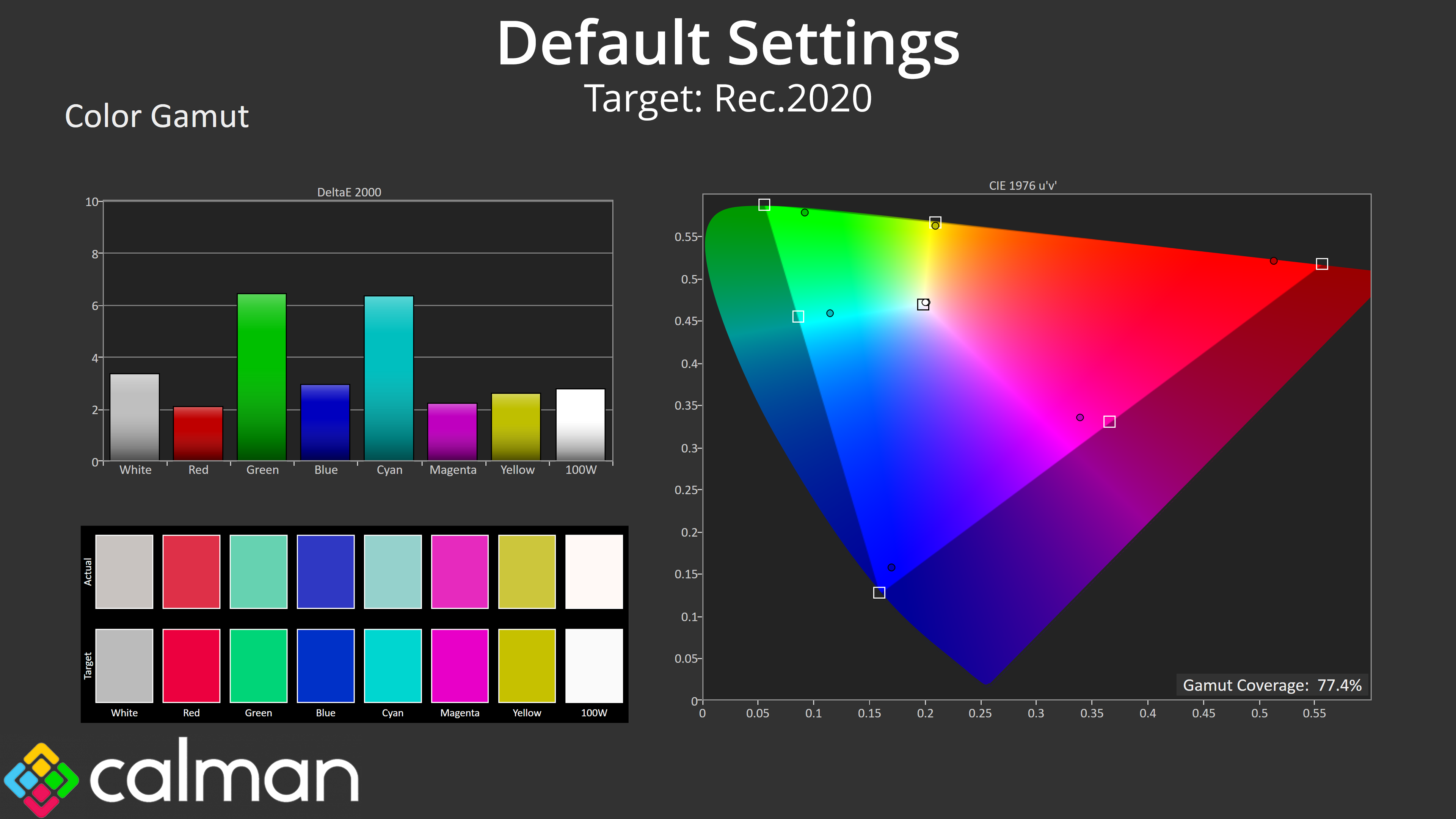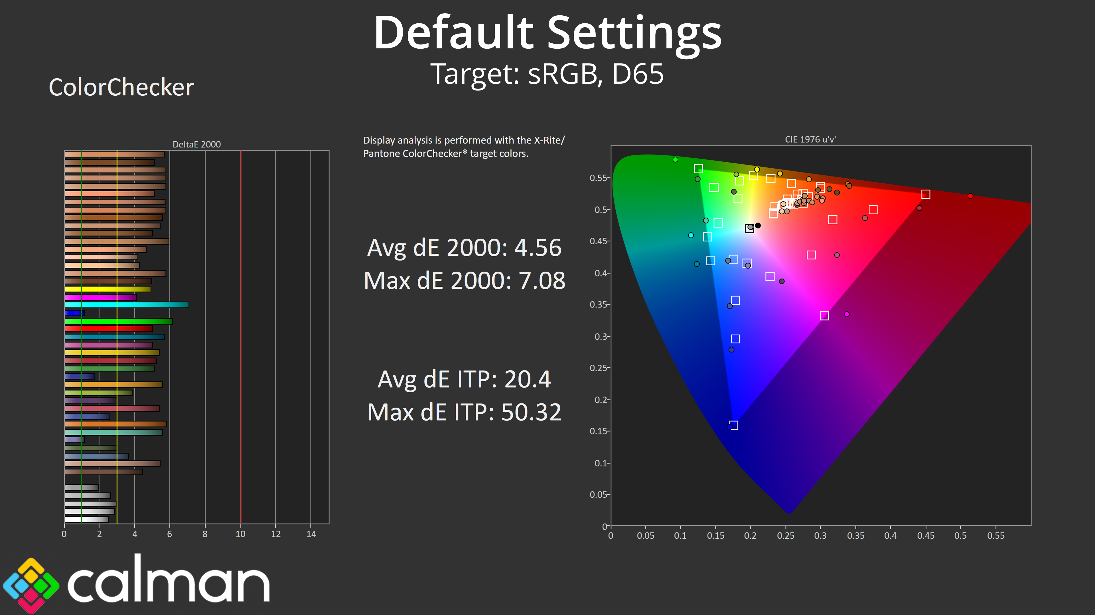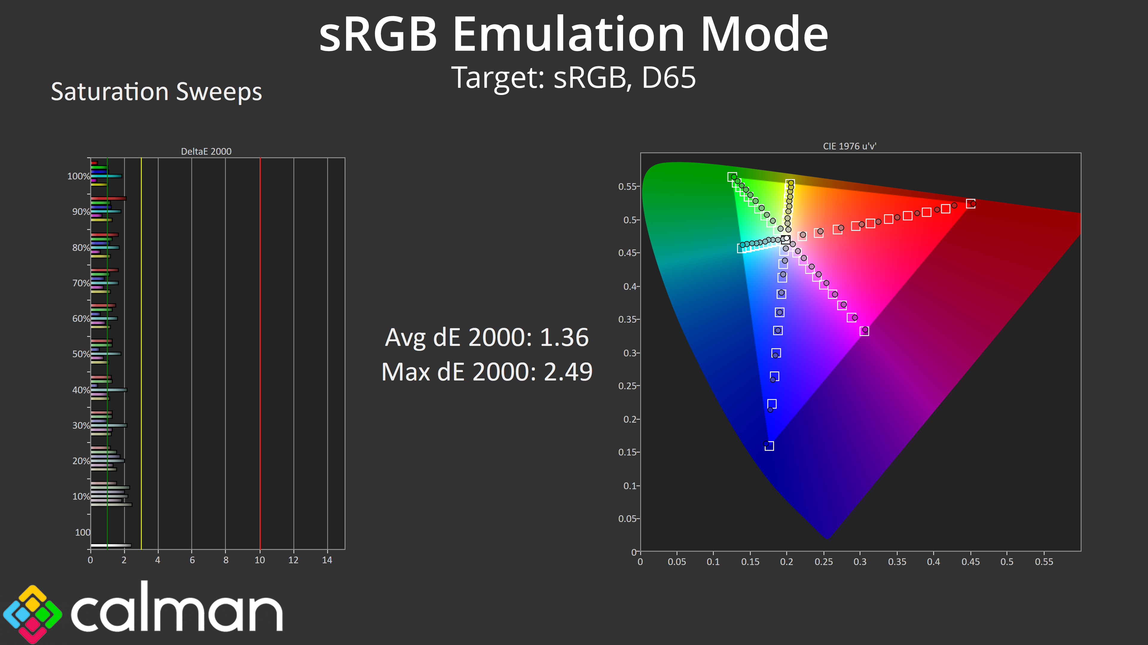 Relative to the DCI-P3 space however, things are more accurate with an average dE of 2.08.