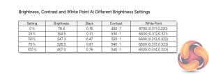 - A monitor’s contrast ratio at various brightness levels in the OSD.