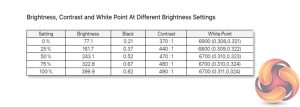 More pleasing though is the perfect white point, hitting 6500K dead at both 75% and 100% brightness.
