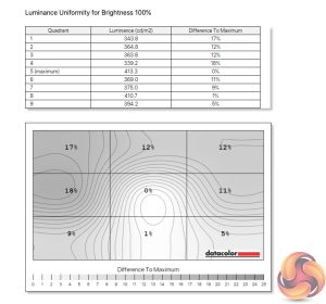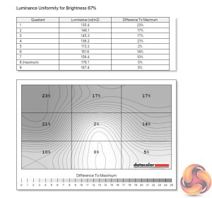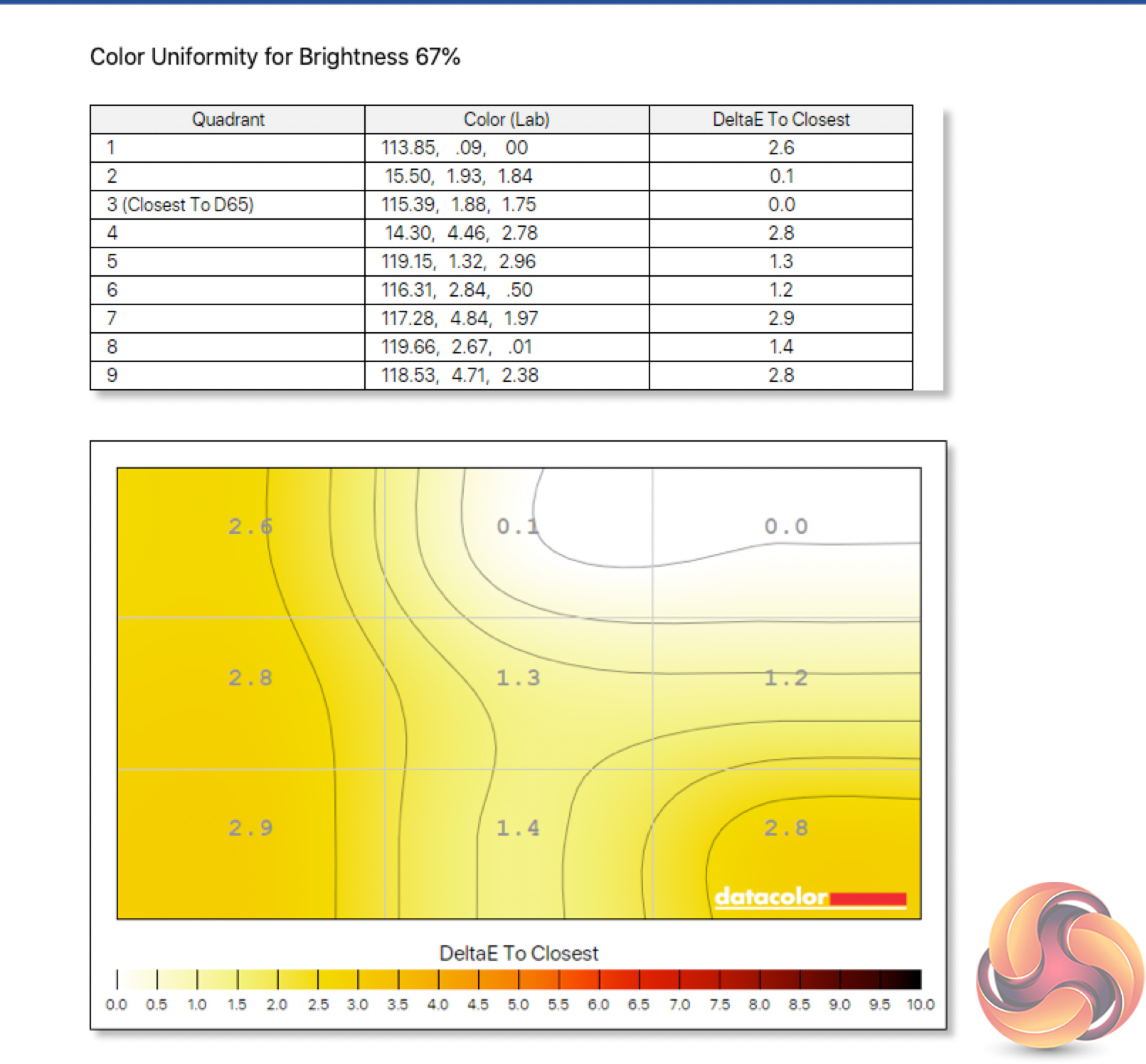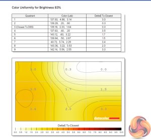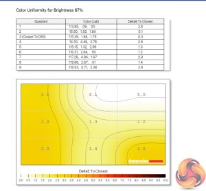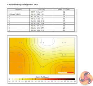 Colour uniformity is a strong area too. We do see some deviation at maximum brightness, but at 75% at below uniformity is excellent across the panel.