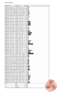 - The colour accuracy, expressed as a Delta E ratio, with a result under 3 being fine for normal use, and under 2 being great for colour-accurate design work.