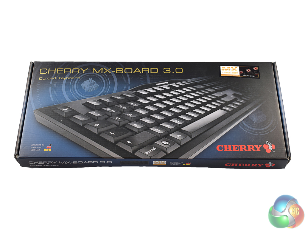 The Cherry MX-Board 3.0 ships in a reasonably compact box, with an eye-catching picture of the MX-Board 3.0 alongside the Cherry logo on the front.