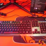 There was also one more keyboard at MSI's booth, though we do not have a name or expected price for this one yet. What we can tell you, though, is that it is a low-profile mechanical keyboard due for release next year. However, rather than using Cherry's new low-profile switch, this board uses Kailh switches, which are the same as we have seen in the recent MSI GT75 Titan laptop. That could make it an interesting competitor to Cooler Master's new low-profile boards we saw yesterday.