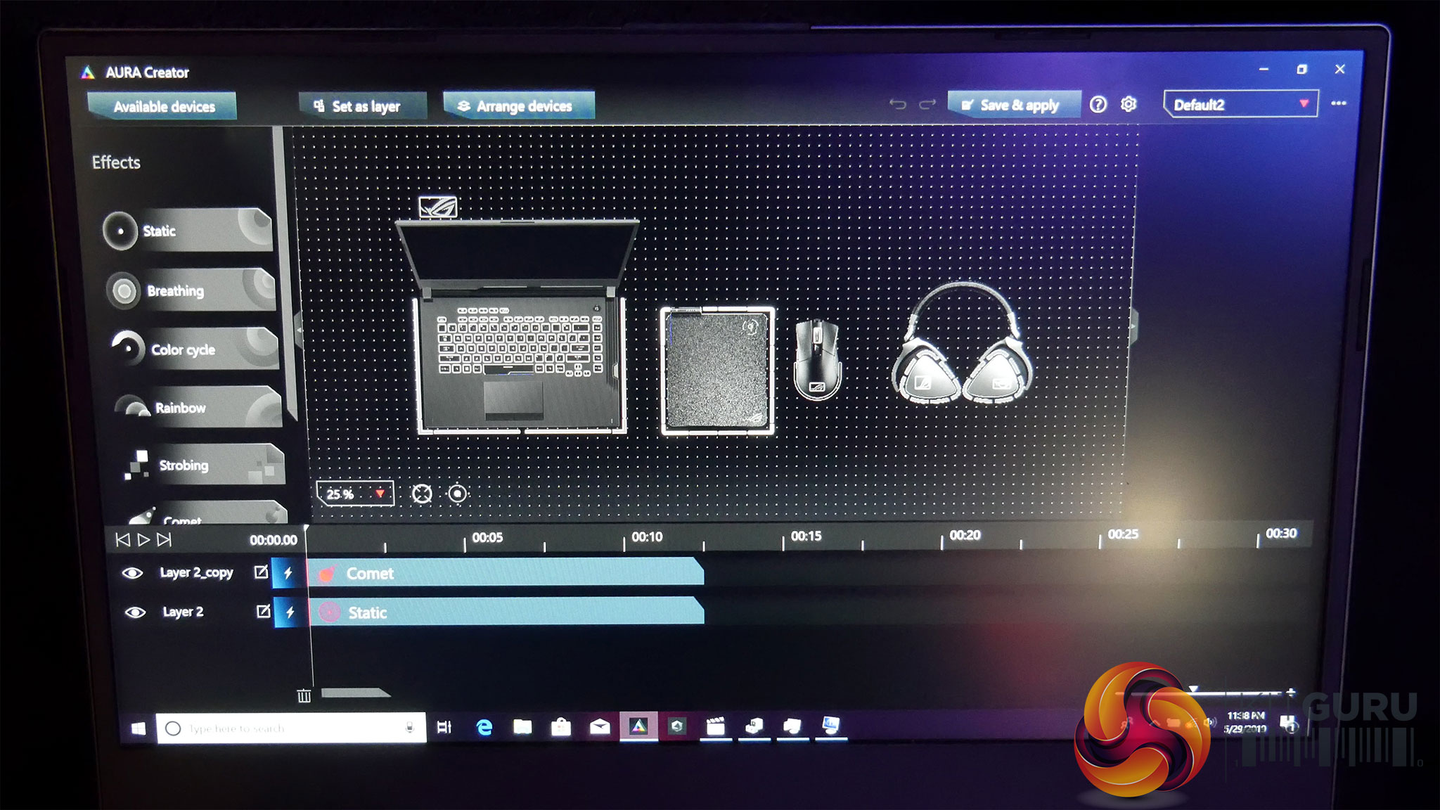 Alongside the ROG Theta Electret we saw earlier this week, Leo also spotted an interesting piece of hardware – known as Aura Creator. This is designed for people who have a whole set of ASUS Aura peripherals, and it allows you to set up your peripherals in software as they are physically positioned on your desk. It's a pretty simple idea, but it ensures your RGB lighting effects flow in sequence rather than bouncing off in seemingly random directions.