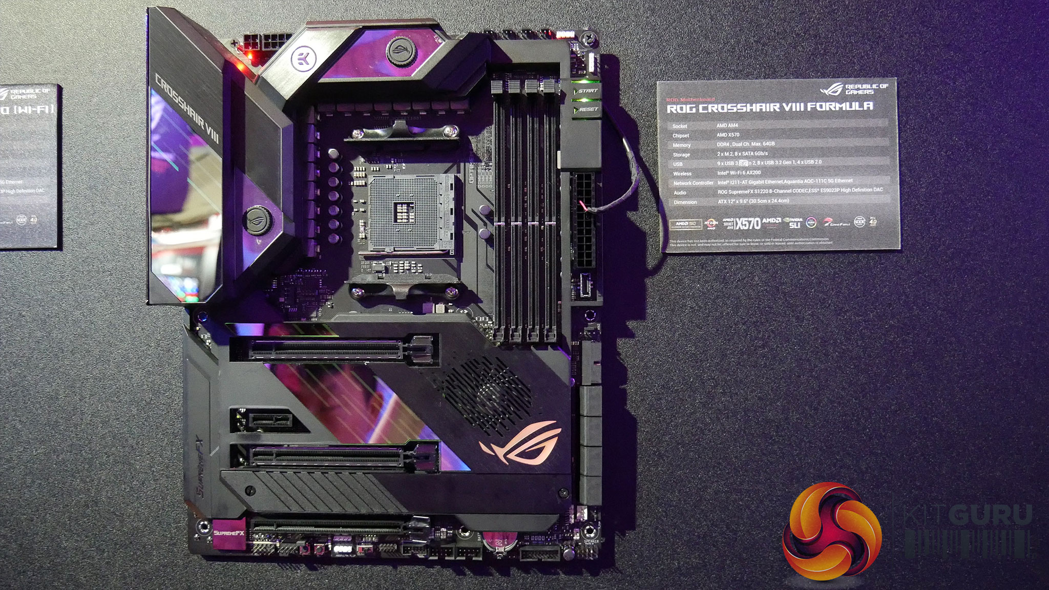 Lastly, Leo also got to see four new X570 motherboards from ROG. There were two ATX boards – the ROG Crosshair VIII Hero, as well as the Crosshair VIII Formula, both with active cooling on the chipset as we know X570 has increased power/heat output. We also got a look at ROG's Mini-ITX model, the Strix X570-i Gaming, as well as a Mini-DTX model – which is much less common – in the form of the Crosshair VIII Impact. You can be sure we'll be taking a closer look at some of these models in the coming months following the official Ryzen 3000 launch.