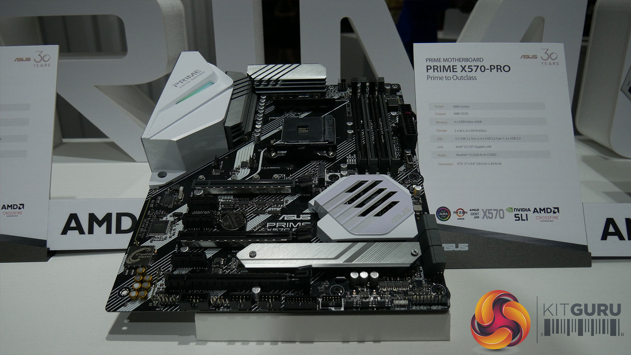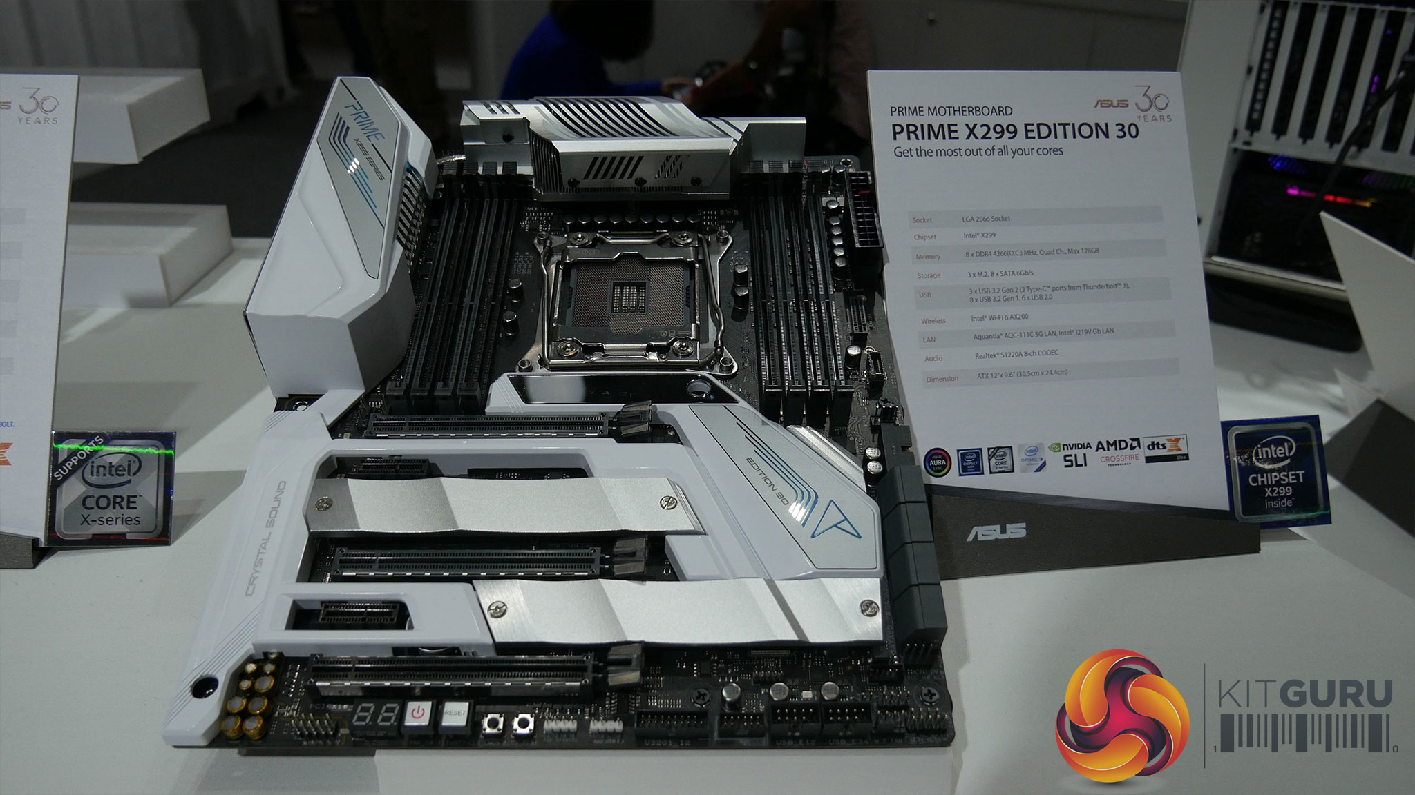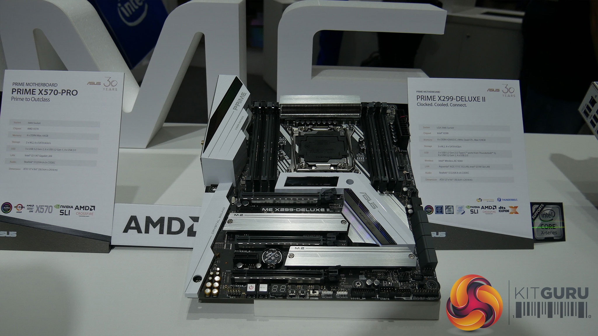 Alongside this, there were plenty of special edition motherboards as well, including the Prime X299 and X299-Deluxe II. The hardware for these is exactly the same as the regular models, but ASUS has revamped the aesthetics with some white heatsinks and motherboard plating to tie-in with the 30th anniversary theme. Leo also spotted a new model, the X570-P motherboard, where the ‘P' stands for ‘price' as this is a new entry-level series.