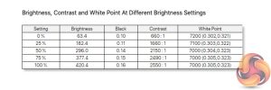 - A monitor’s contrast ratio at various brightness levels in the OSD.