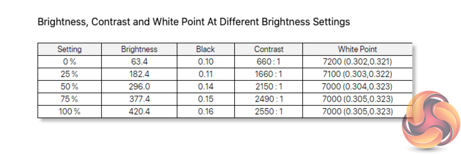 The other point to mention here is the slightly cool white point, which hit 7000K at 50% brightness and above.