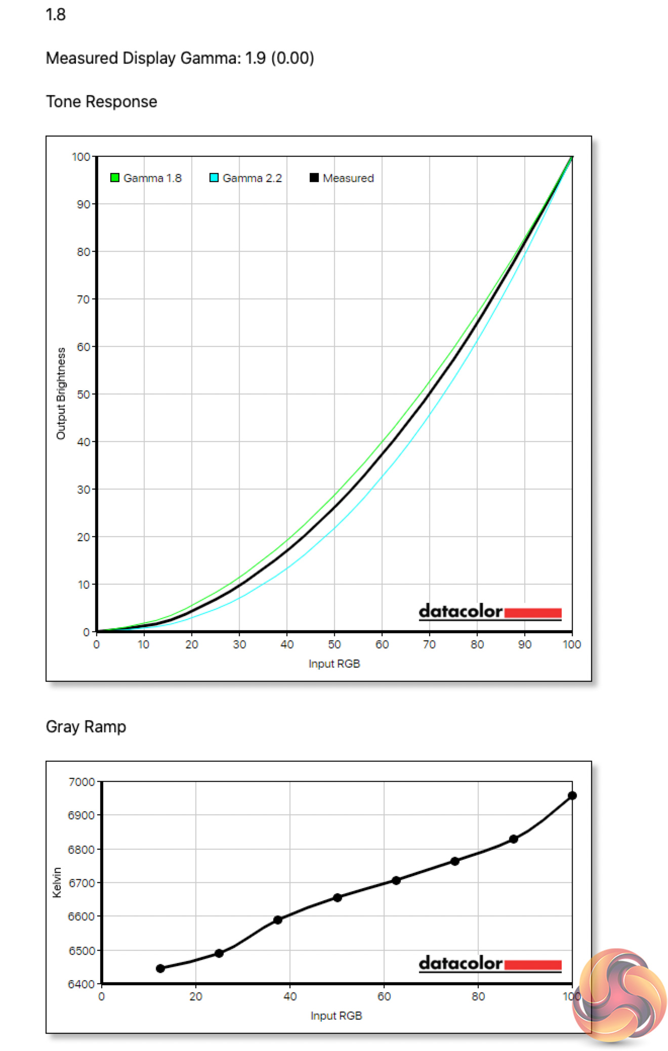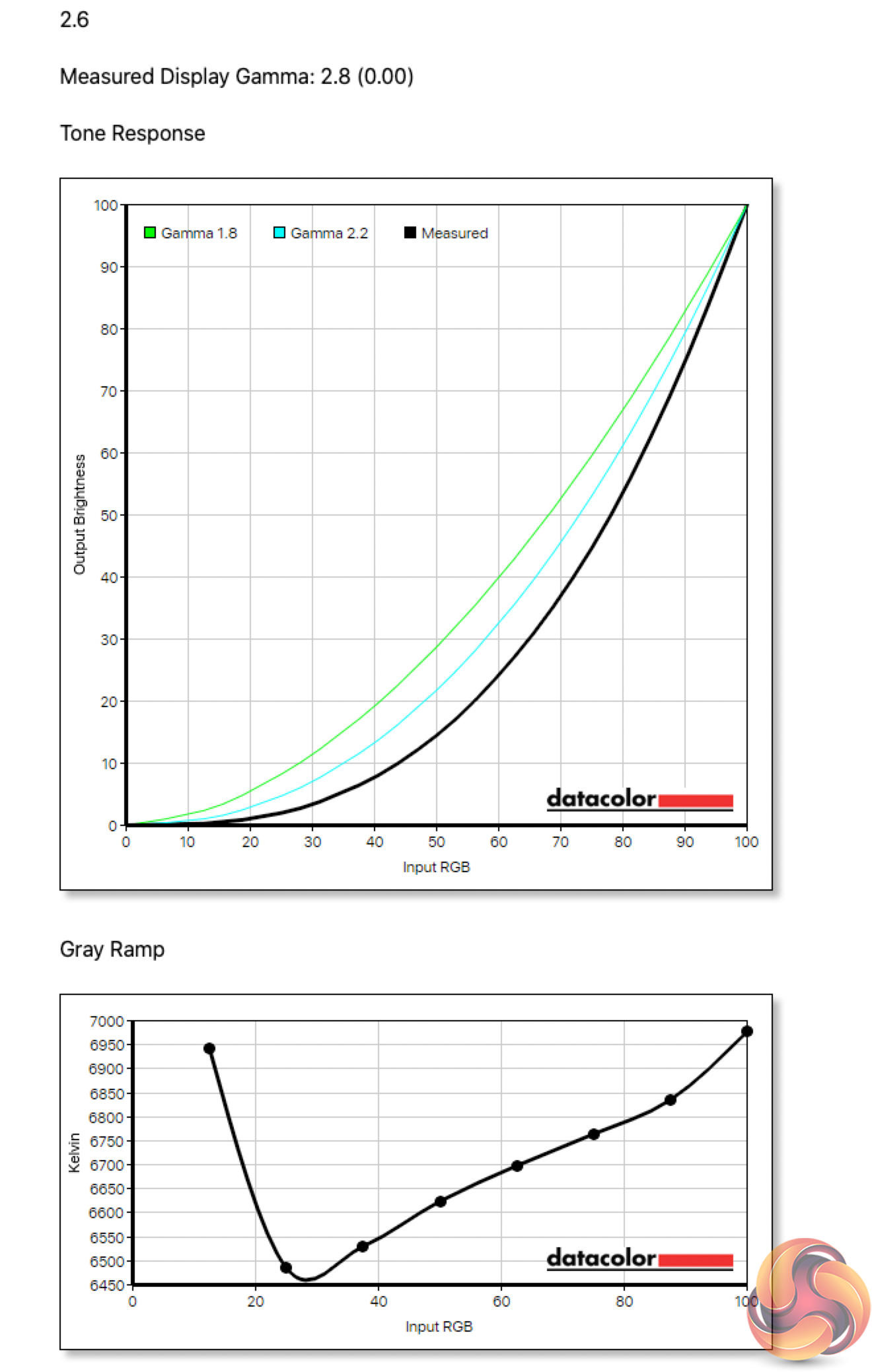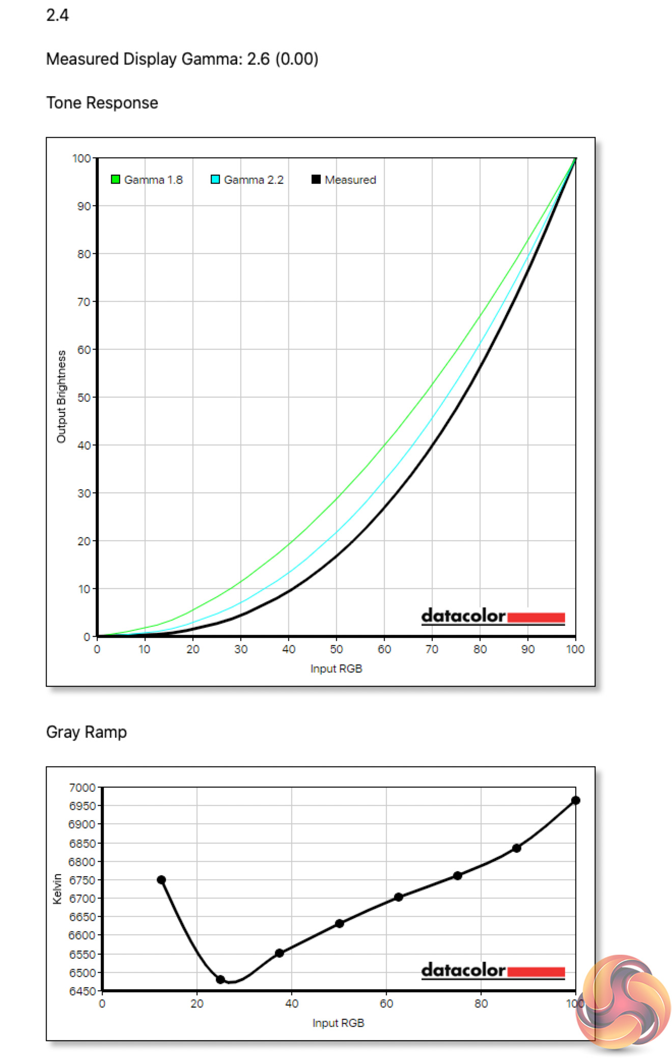 As for gamma, here Cooler Master offers five different options – 1.8, 2.0, 2.2, 2.4 and 2.6. Obviously each is meant to correspond to an actual gamma value, but I found these are not perfectly aligned. The 1.8 setting, for instance, game a gamma value of 1.9, while all the rest came in 0.2 above their targets.