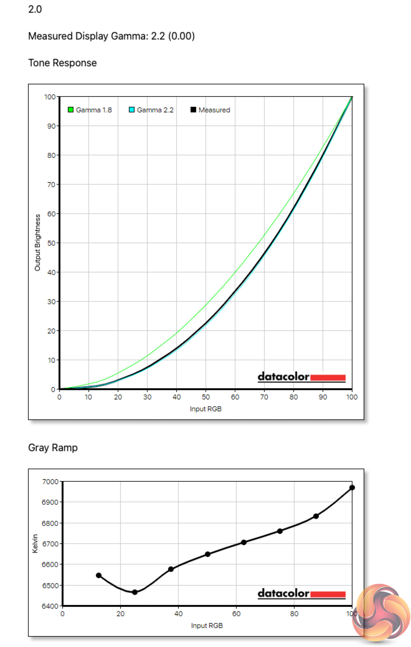 This means, to achieve a gamma value of 2.2 out of the box, you actually want to use the 2.0 setting, as the 2.2 settings produces a gamma value of 2.4. It's a quirk for sure, but at least it is possible to achieve gamma 2.2.