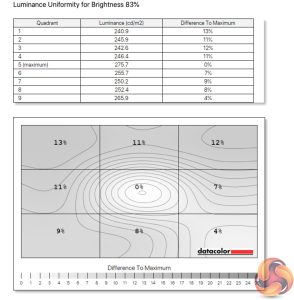- The brightness deviation across the panel.