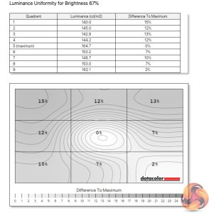 Luminance uniformity is slightly less impressive, though this time it gets worse at the lower brightness settings. In use, I could have no complaints at my preferred 75% brightness setting.