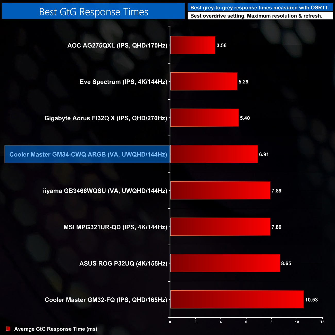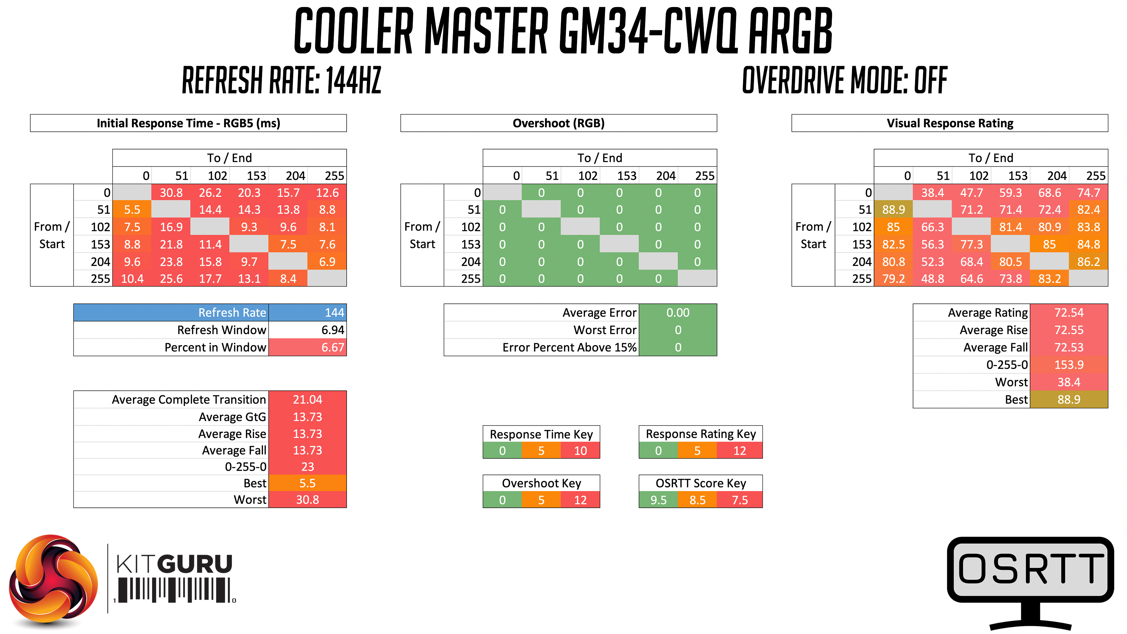 We test the GM34-CWQ at 144Hz, using all four of the overdrive settings found within the OSD.