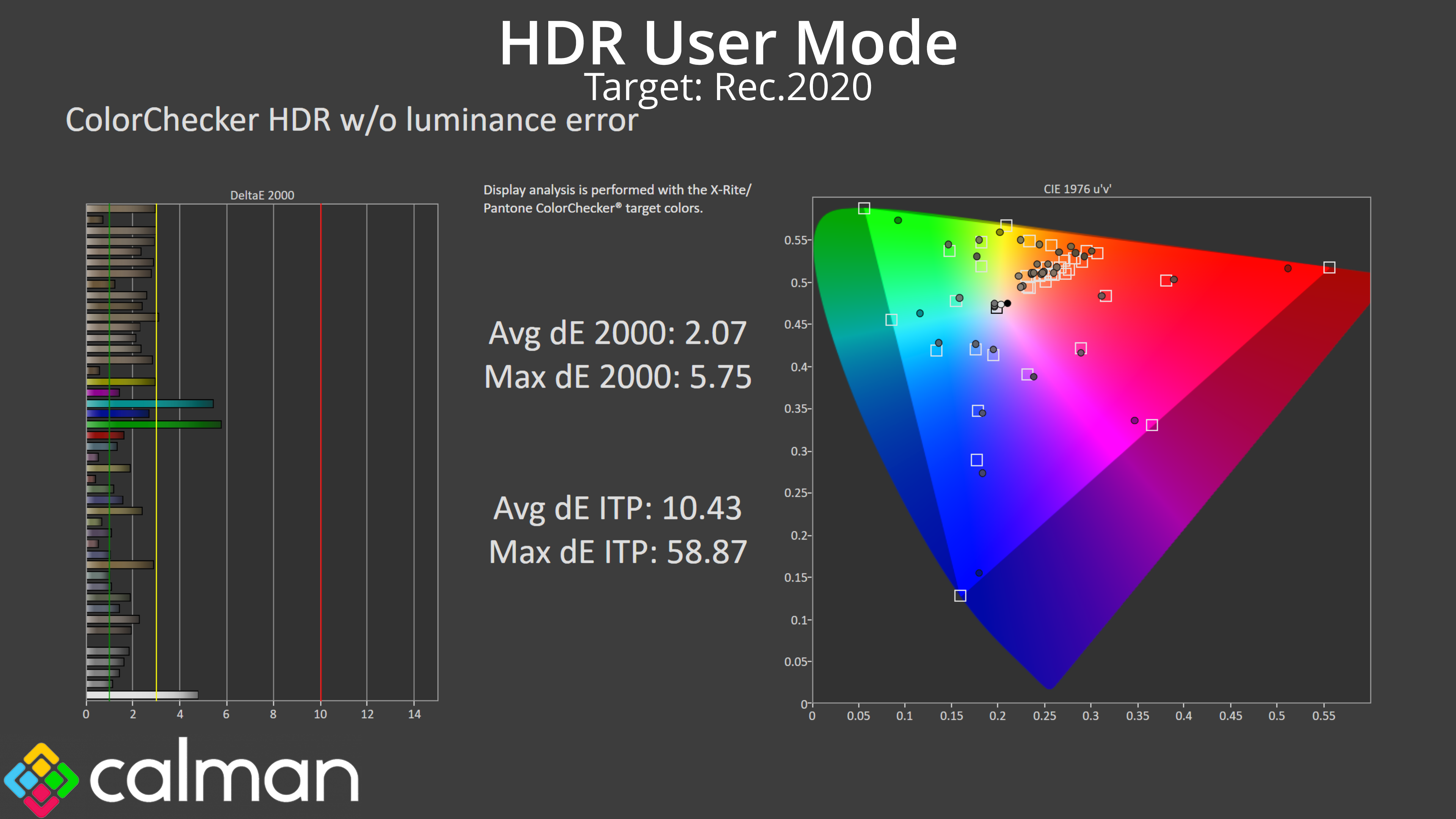 Following on from the SDR results on the previous page, here we re-test the relevant areas of the display with HDR enabled.