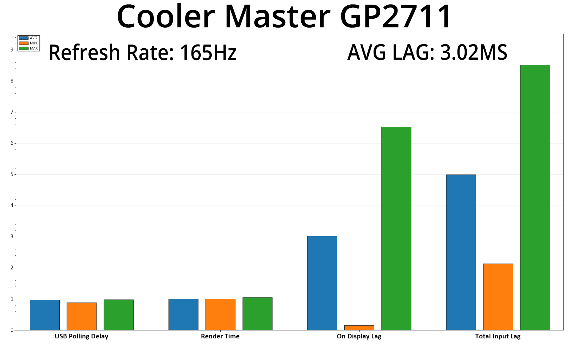 Thankfully, input latency is not a problem for the GP2711, as we saw an average on display lag of 3.02ms, so that's less than half a frame at 165Hz.